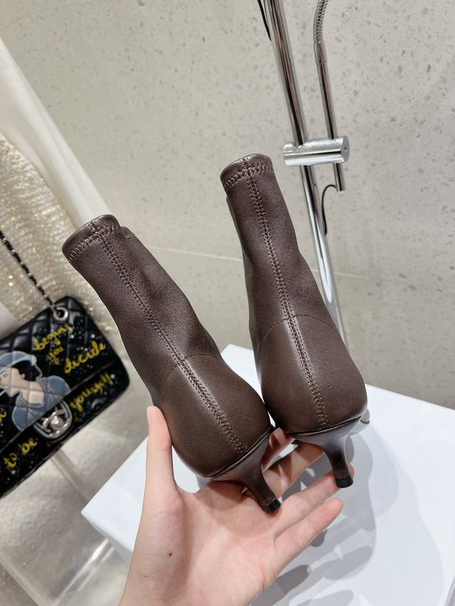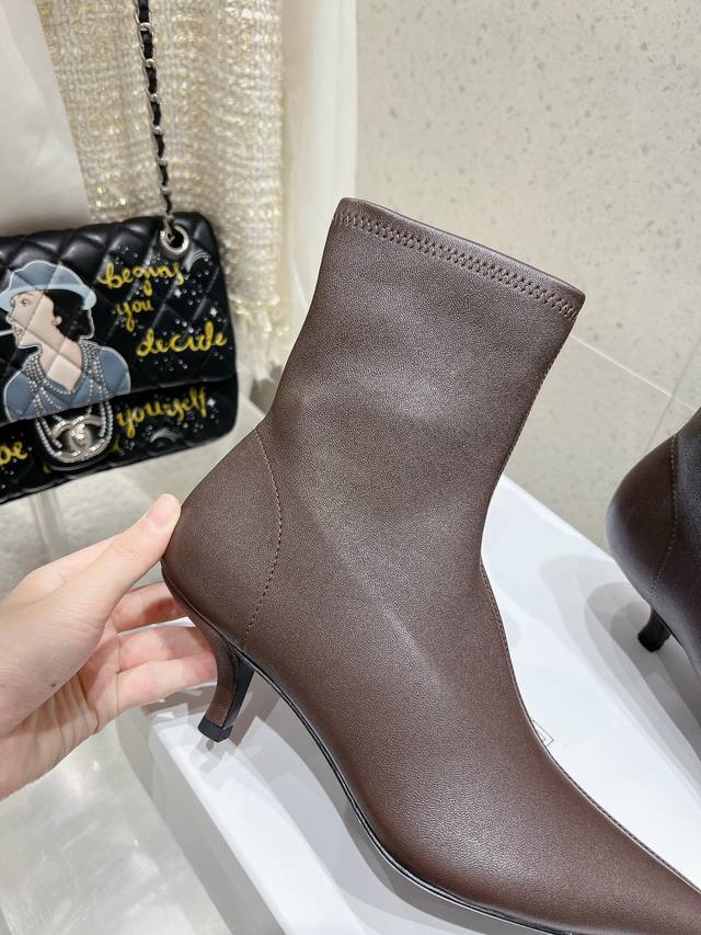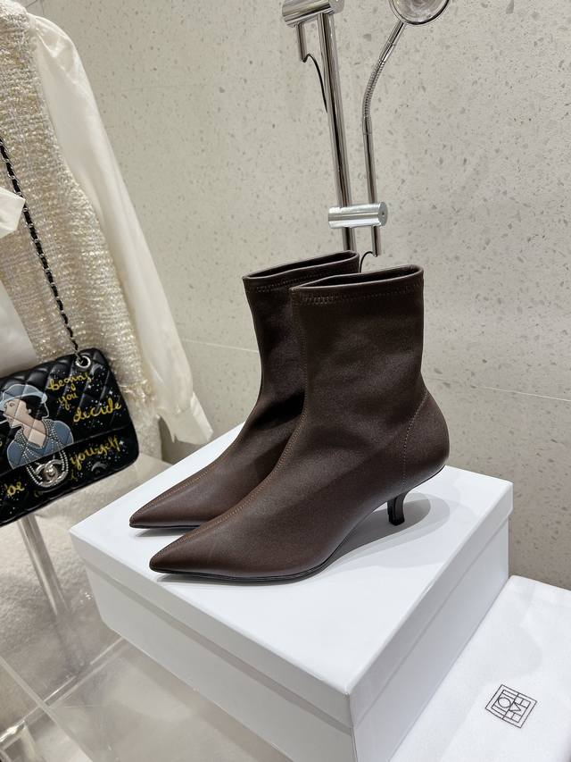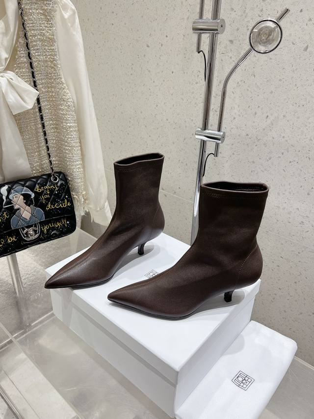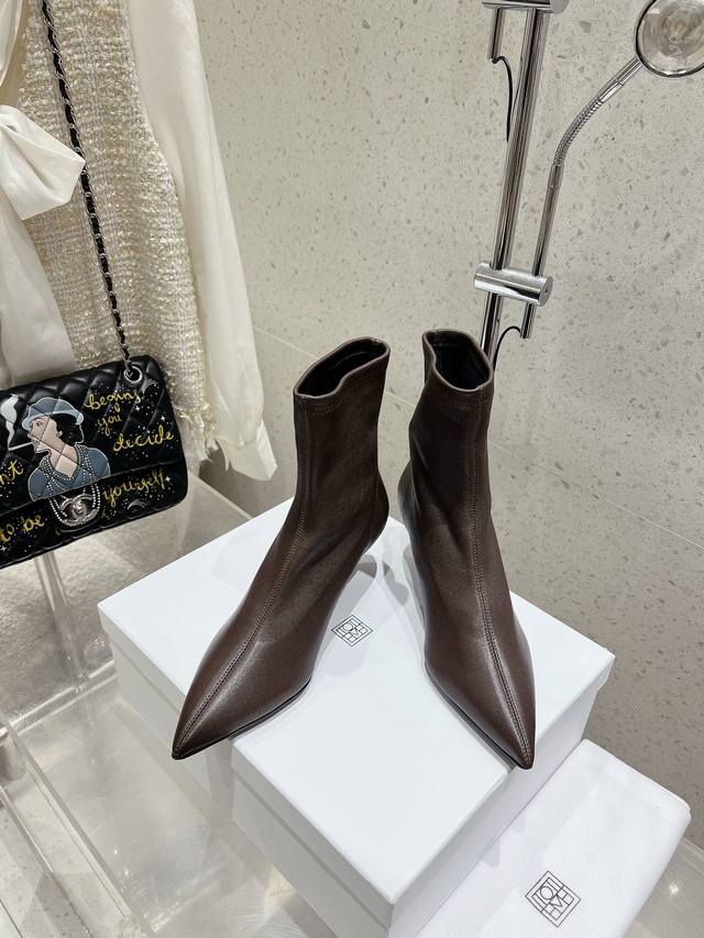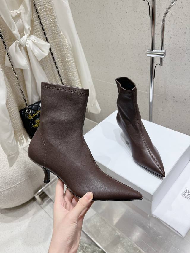 Toteme 秋冬新品尖头猫跟弹力短靴