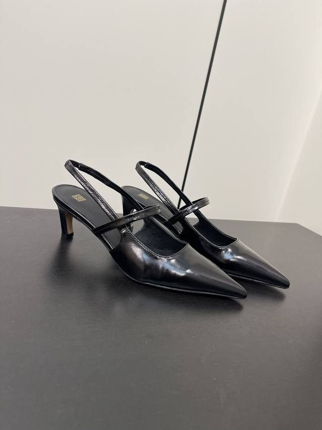 Toteme 24 Slingback 凉鞋 简单利落的设计很适合日常穿着,尖头很有气场,后空设计不磨脚后跟,脚背袢带穿的更稳不掉脚,既高级又实用的款 面料:油