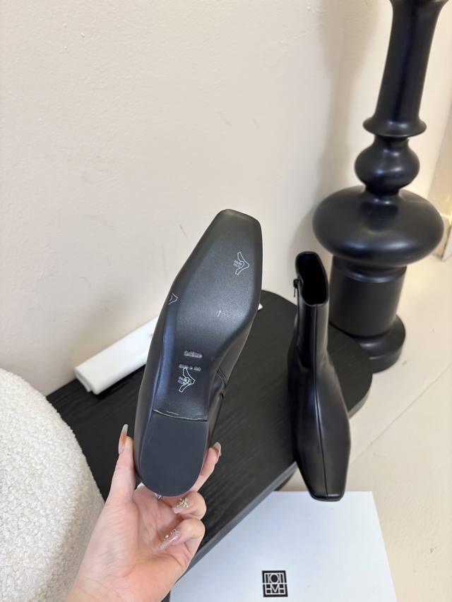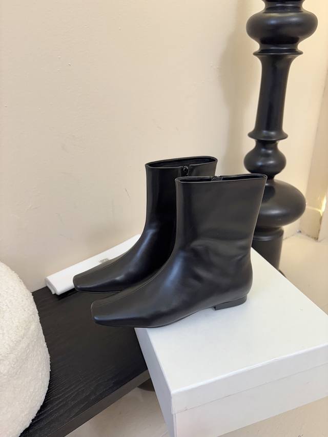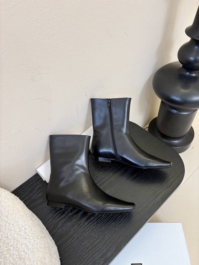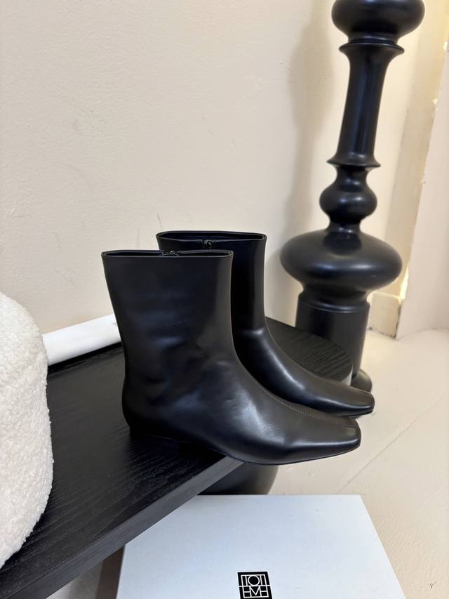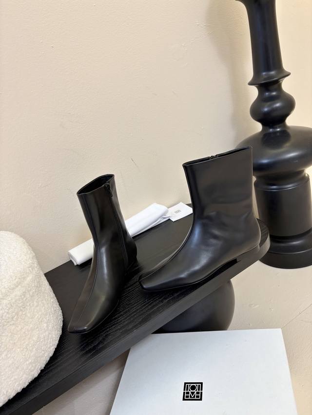 Toteme25秋冬新款小方头平跟侧拉链短靴!一双简约干练、低调时髦的短靴,要相信Toteme的简约高级感,能穿出自己的独特品味。