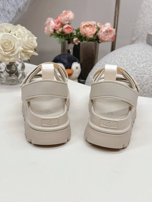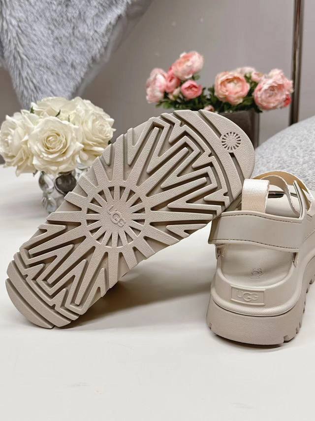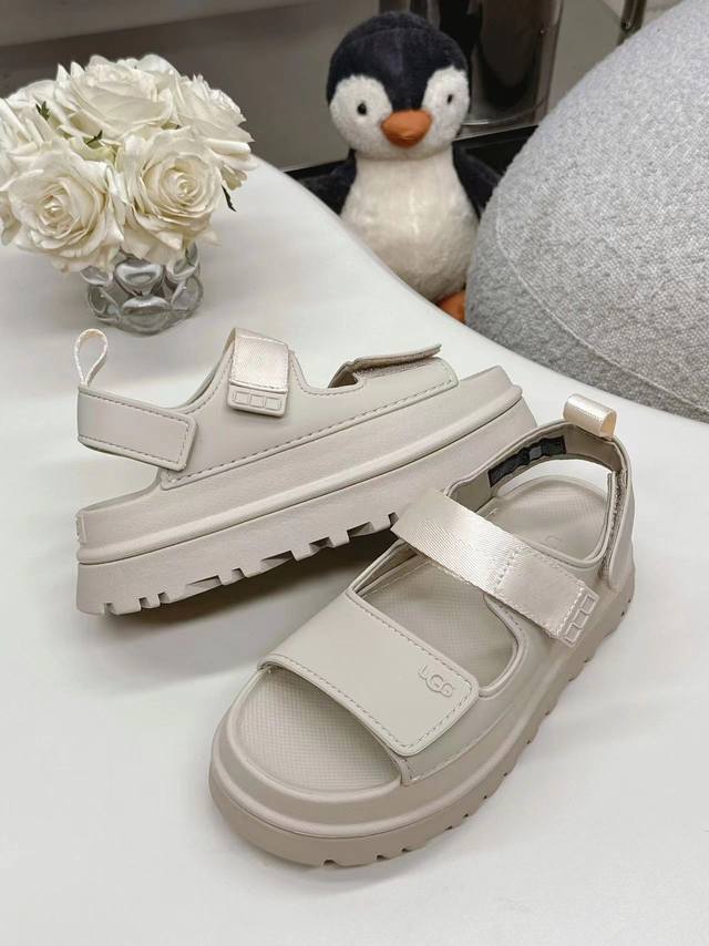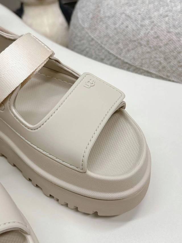 ugg厚底魔术贴凉鞋炫金多巴胺色系,绑带设计 更贴合脚背 活力感拉满,真嘟超级少女~一眼沦陷, Eva大底,脚感软糯舒适,百搭,秒变大长腿,可以踩水又能 Diy 明星同款 各大博主的安利夏日必备单品