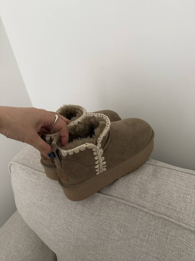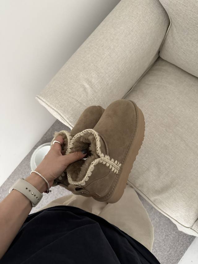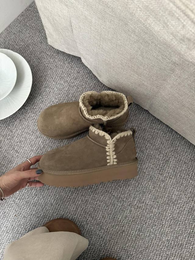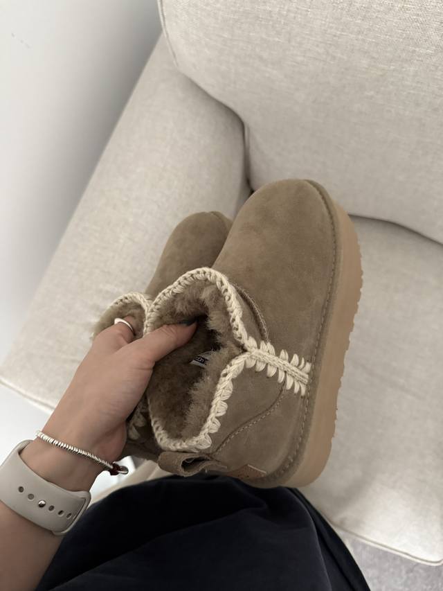 ugg厚底mini毛线口3Cm 手工毛线编织,隆丰a级皮毛一体 可爱款 Size:35-40