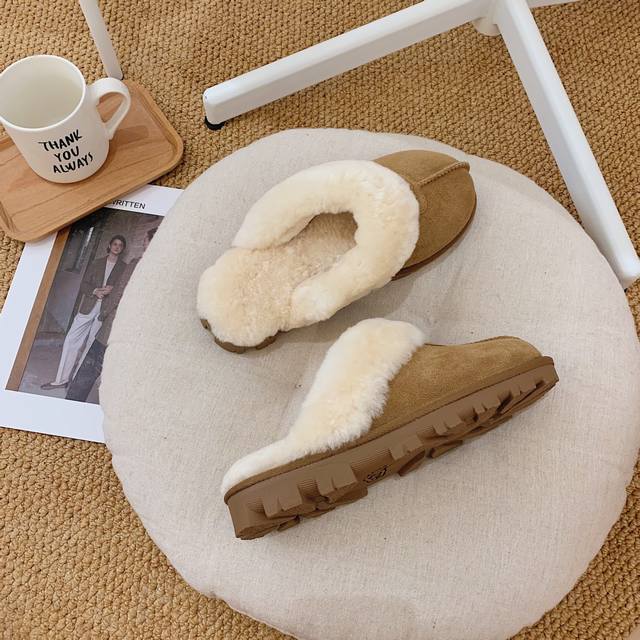 Ugg四季女士羊皮毛一体平底休闲时尚舒适百搭星拖,三色,码数 35-40 大量现货