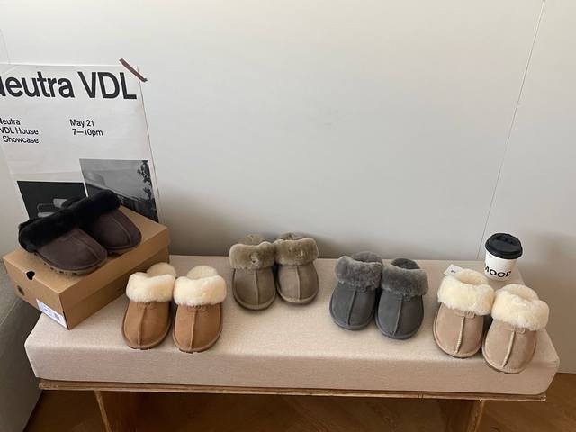Ugg女士平底休闲时尚舒适百搭星拖 牛皮革+羊皮毛 五色,咖啡色,栗色,灰色,沙色,羚羊棕色! Size:35-40