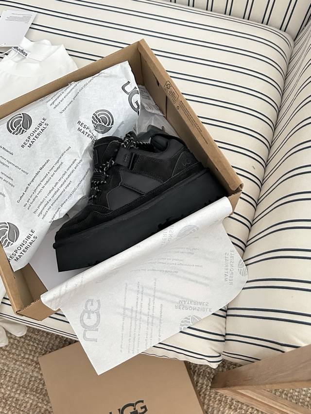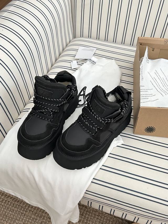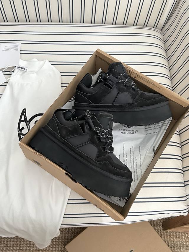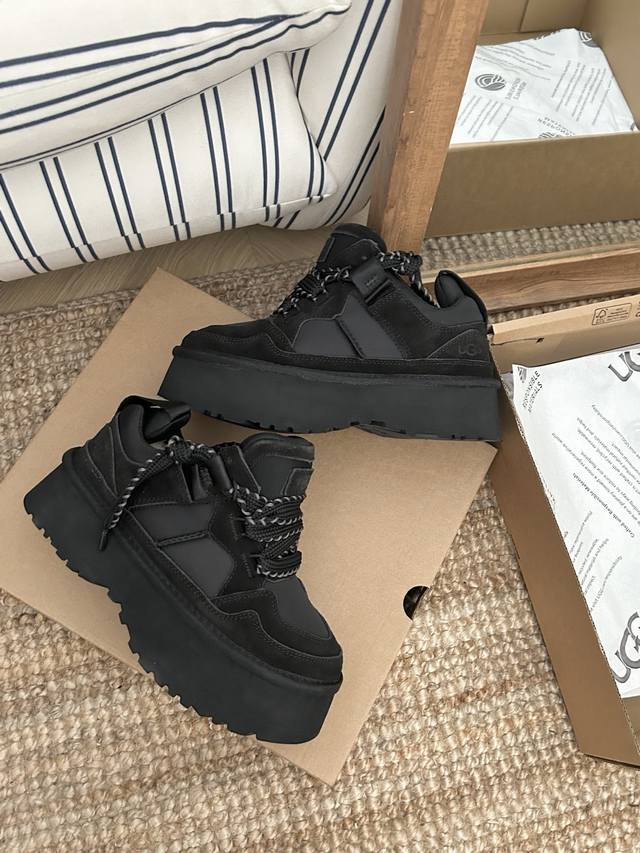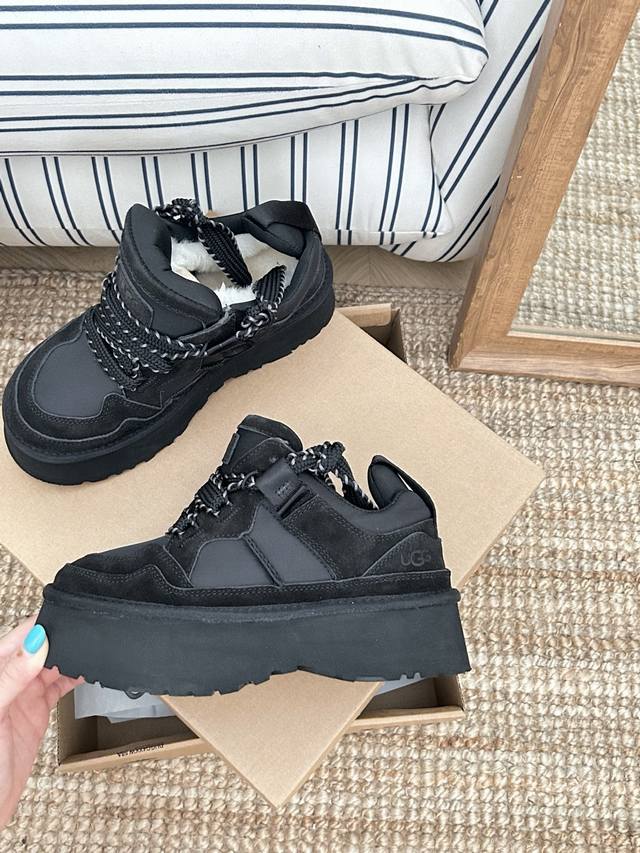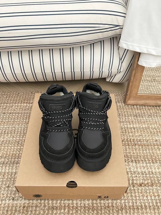 Ugg新款厚底梅尔,5Cm增高慵懒复古 宽鞋带太有Feel 穿搭好看 牛皮羊毛