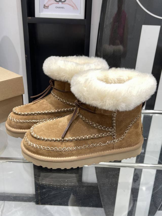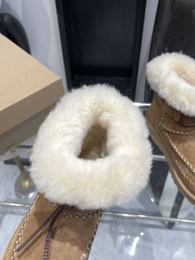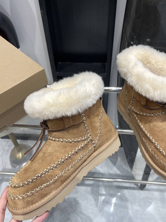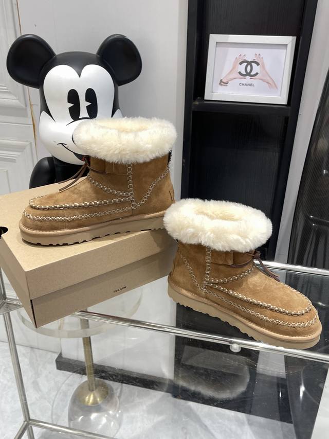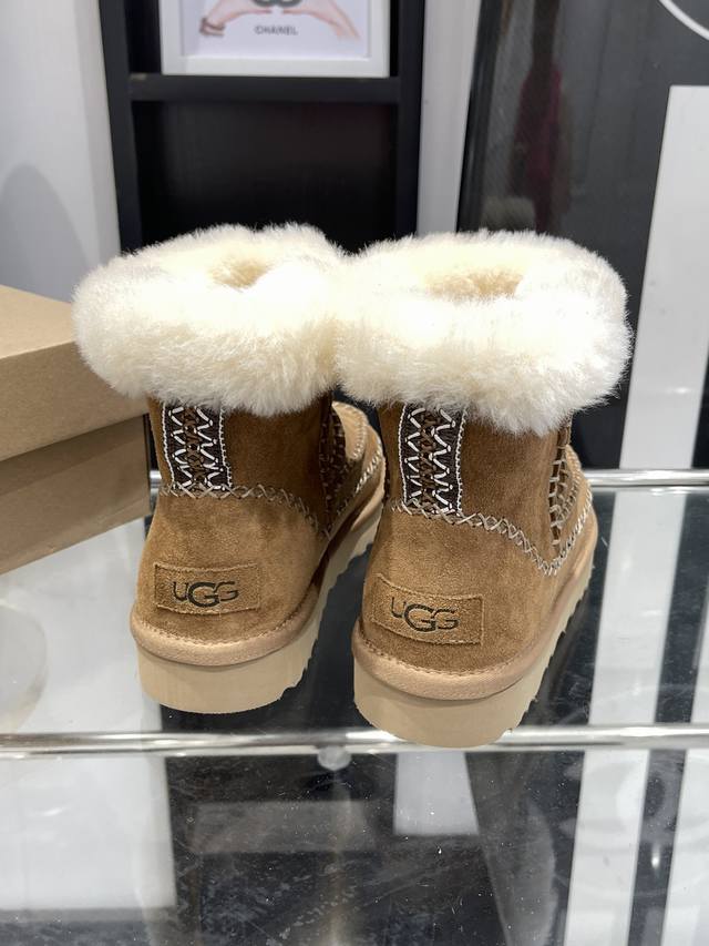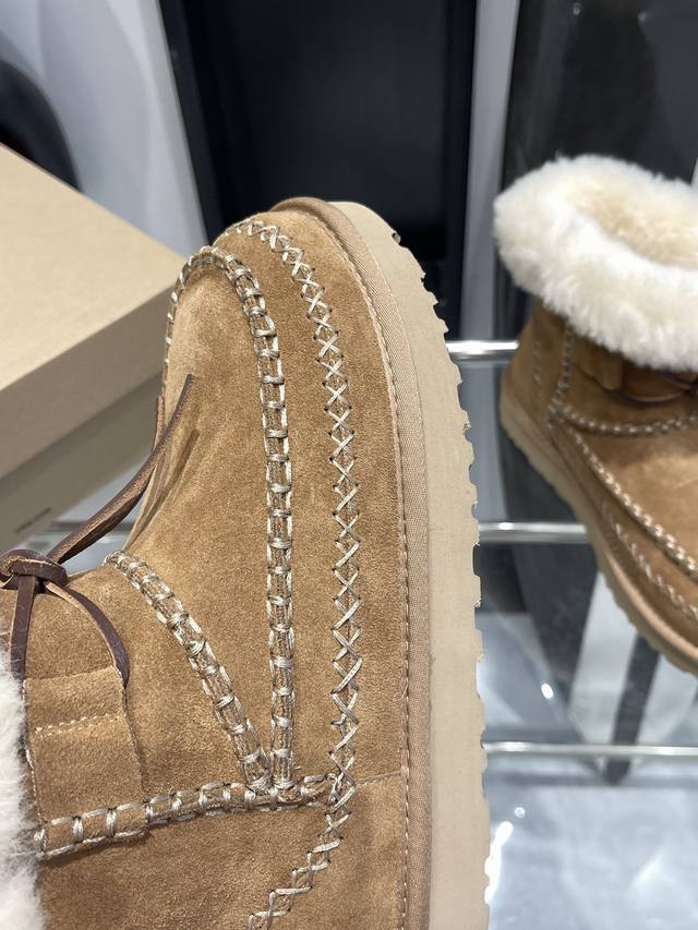 Ugg阿尔派系列毛毛鞋 超短靴 舒适轻便 一脚蹬 浓浓的编织民族风感觉 时尚又简约 翻毛搭配装饰缝线 冬天的可爱拿捏住进去了