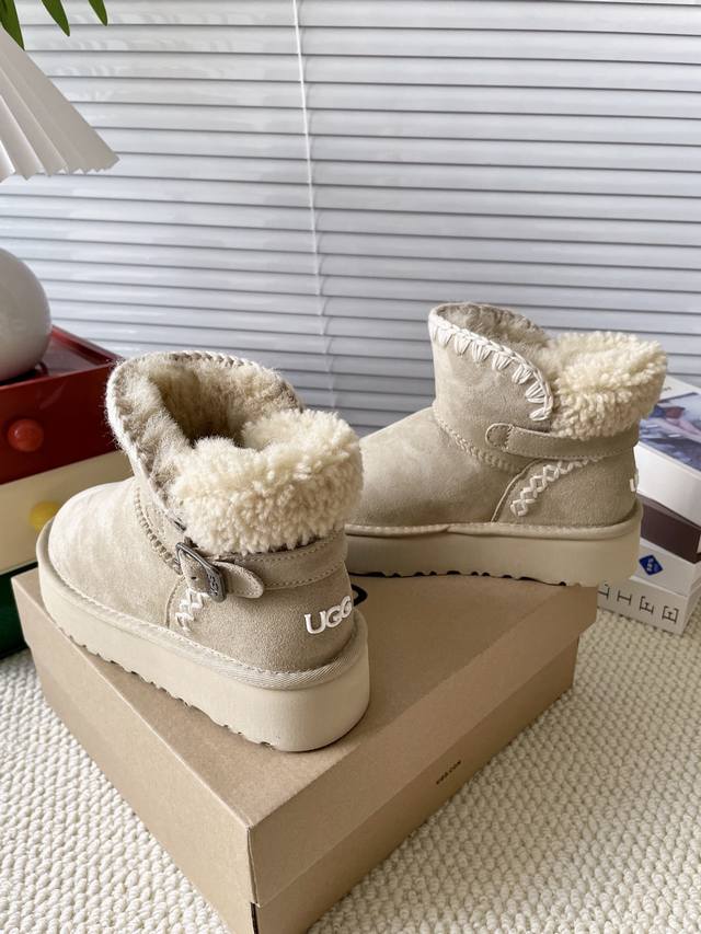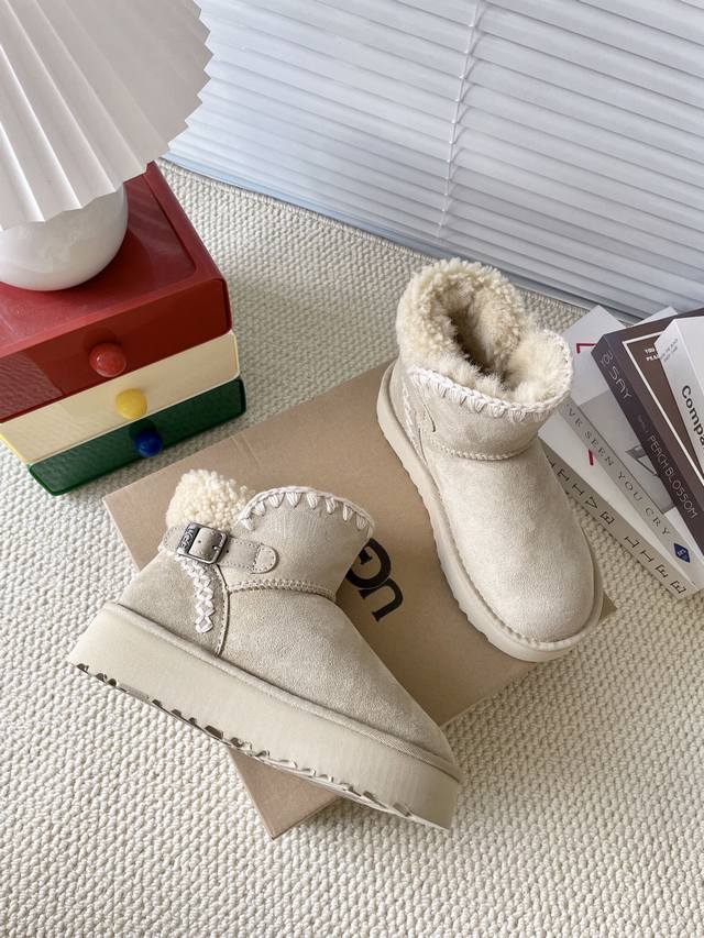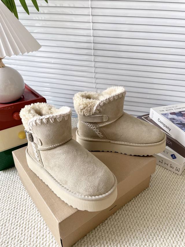 非常的珍贵费时 进口羊毛皮毛一体 保暖舒适加倍呵护双脚 冬天必备单品