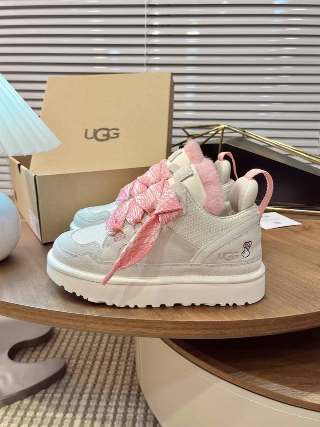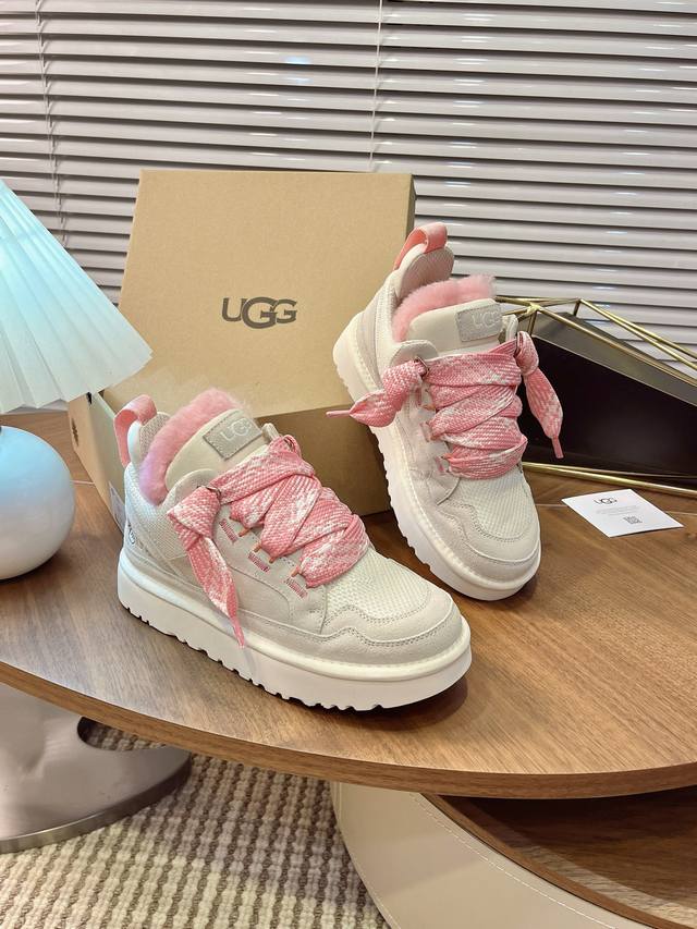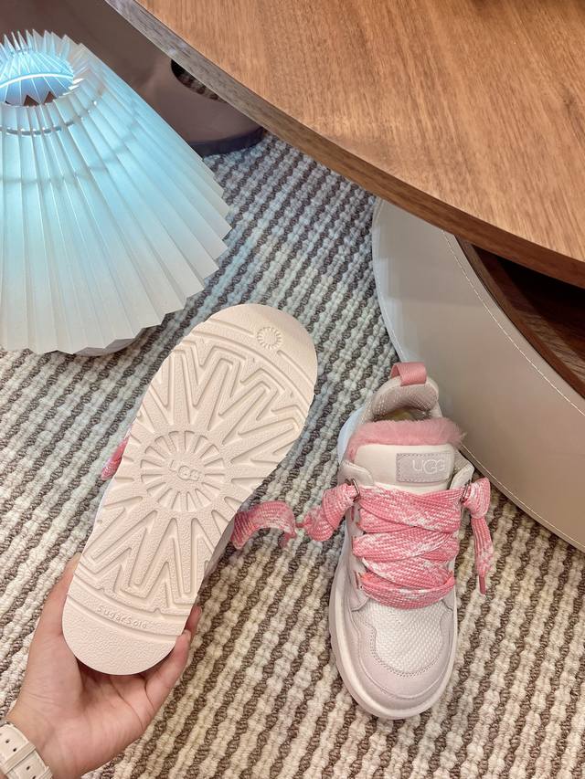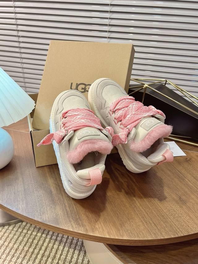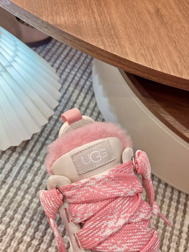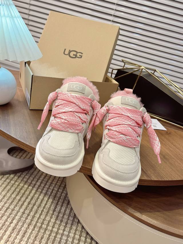Ugg秋冬新款梅尔休闲鞋毛毛鞋雪地靴 鞋面设计,再生弹道帆布网纱、采用优质翻毛皮鞋面,鞋内里材质,采用隆丰羊皮毛一体。毛茸内里,保暖锁热,跟后侧饰有压花Logo
