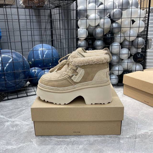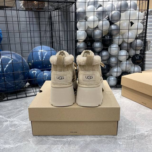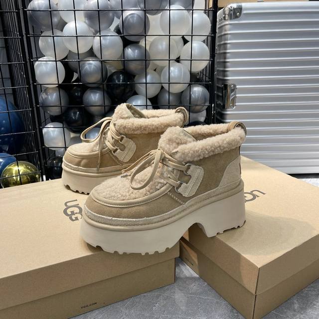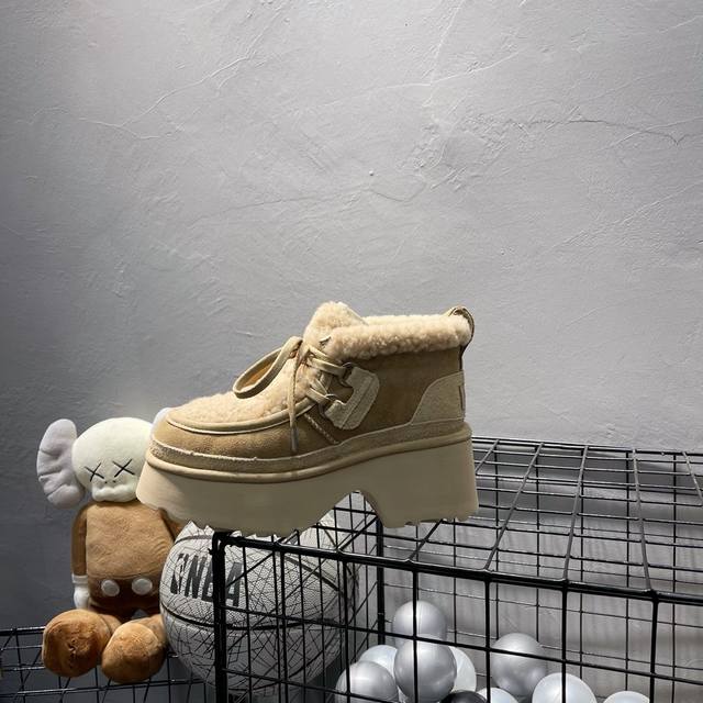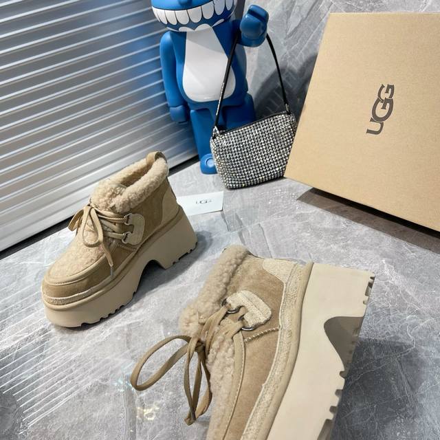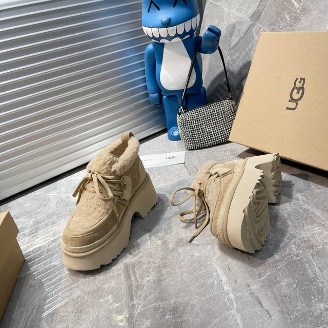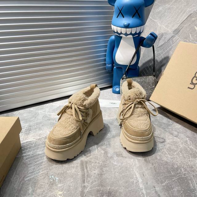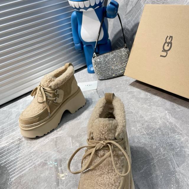 Ugg秋冬新款 厚底坡跟人鱼系带靴 Ugg泰迪卷毛 毛毛鞋软软糯糯 百搭时尚新款 小仙女冬天的必备品 上脚非常轻 超舒服 颜色:沙色 栗色 黑色 码数:35-4