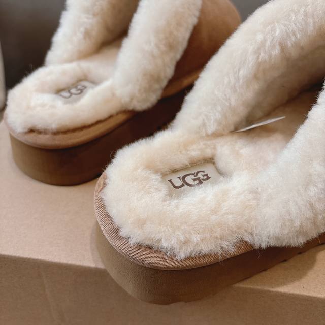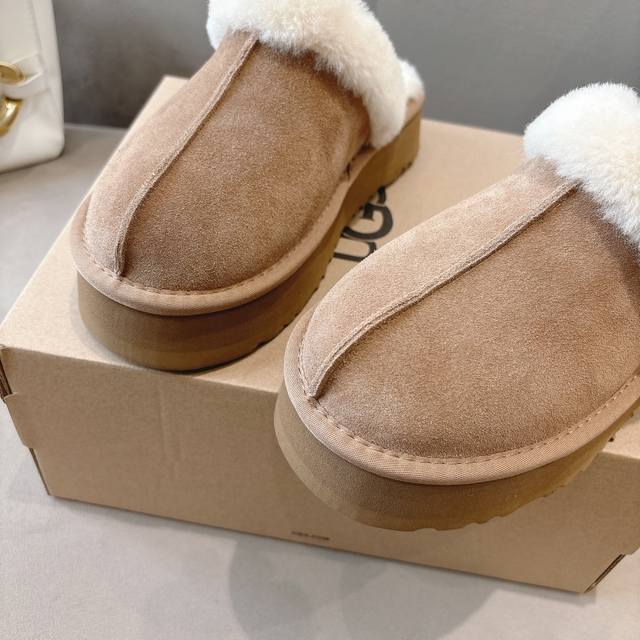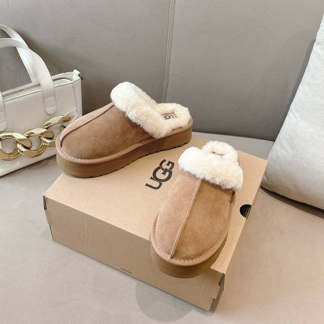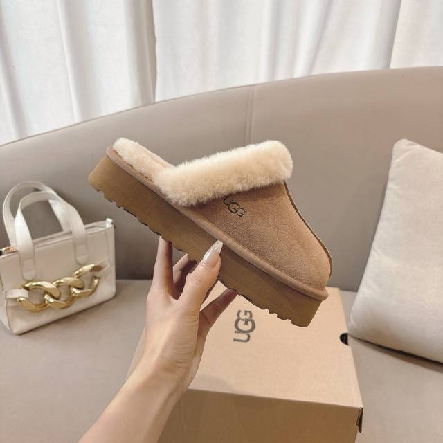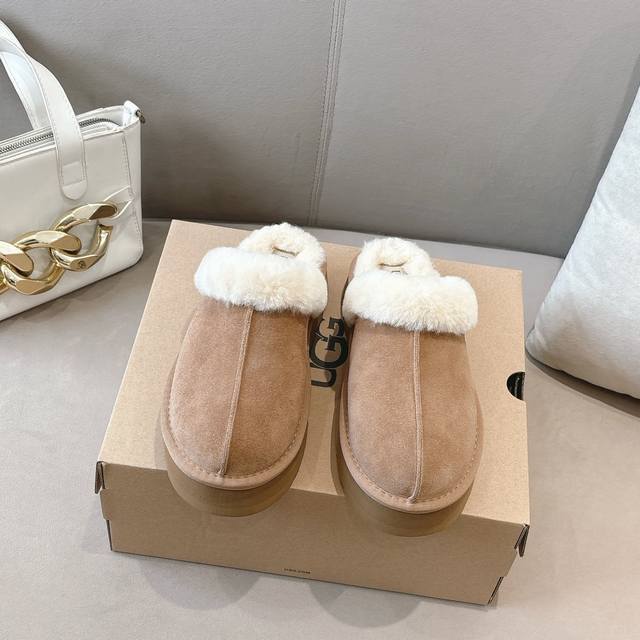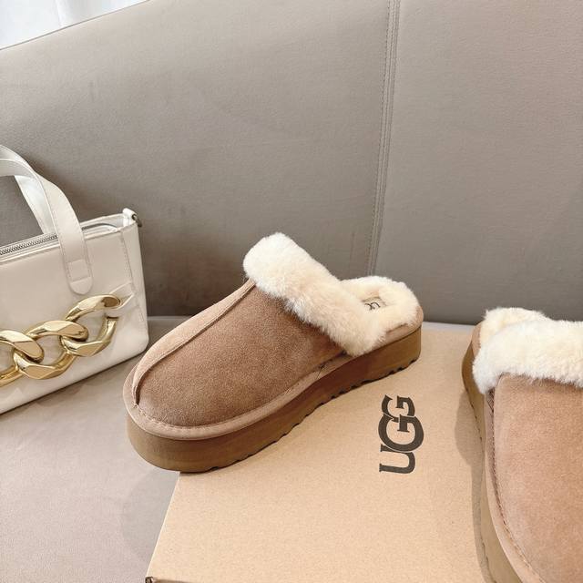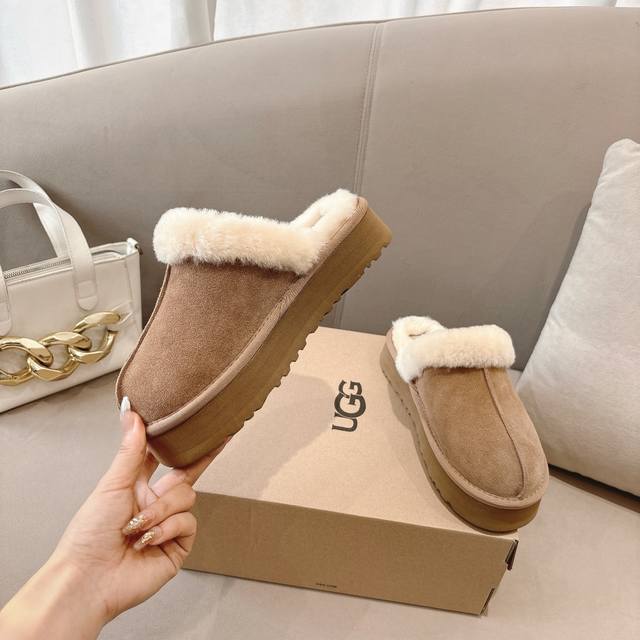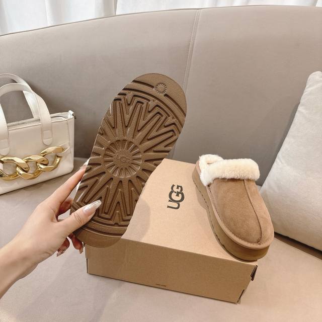 ugg秋季女士时尚经典舒适厚底毛鞋领包头休闲居家懒人鞋 1122550女士新款羊毛拖鞋时尚舒适纯色厚底系带装饰休闲半拖包头拖鞋
