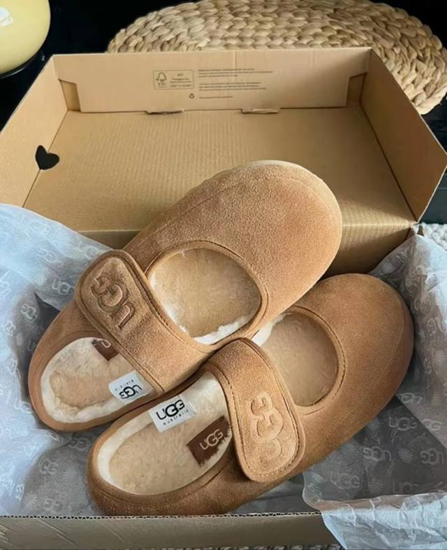 Ugg羊毛玛丽珍 懒人小平底3色. 长期主义松弛感拿捏 牛反绒搭配澳洲美利奴羊毛 质感超棒 穿脱很随意 Size:35-40 三色