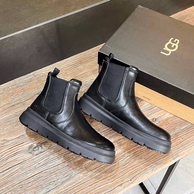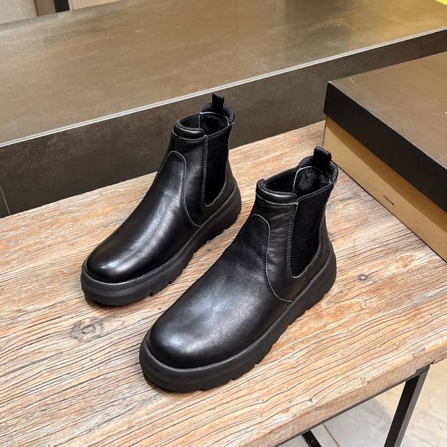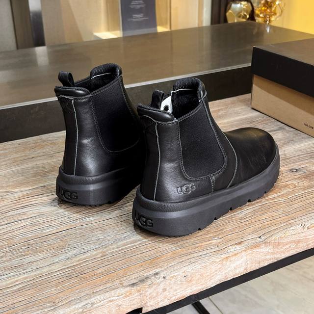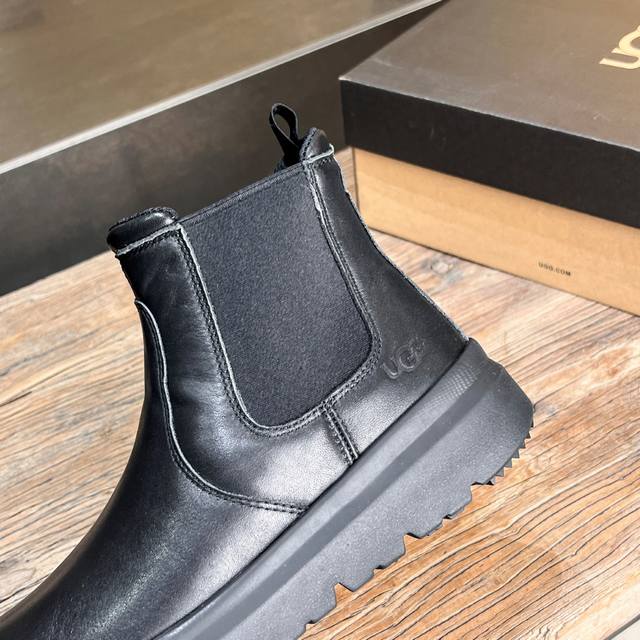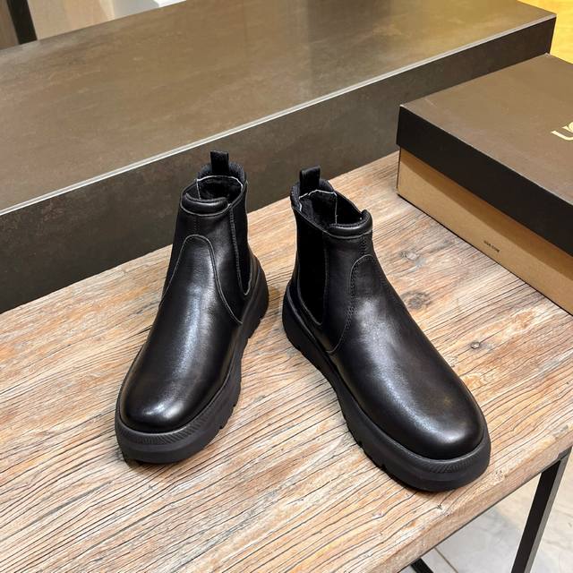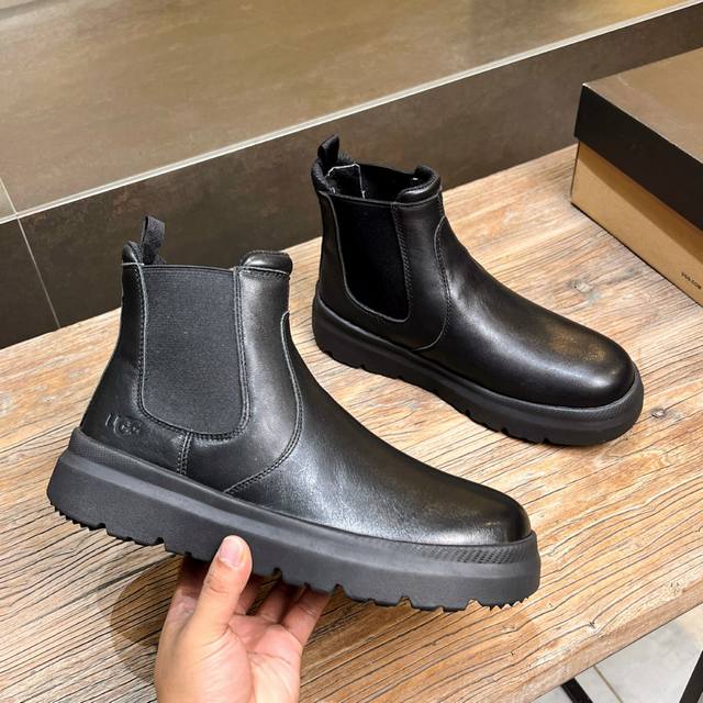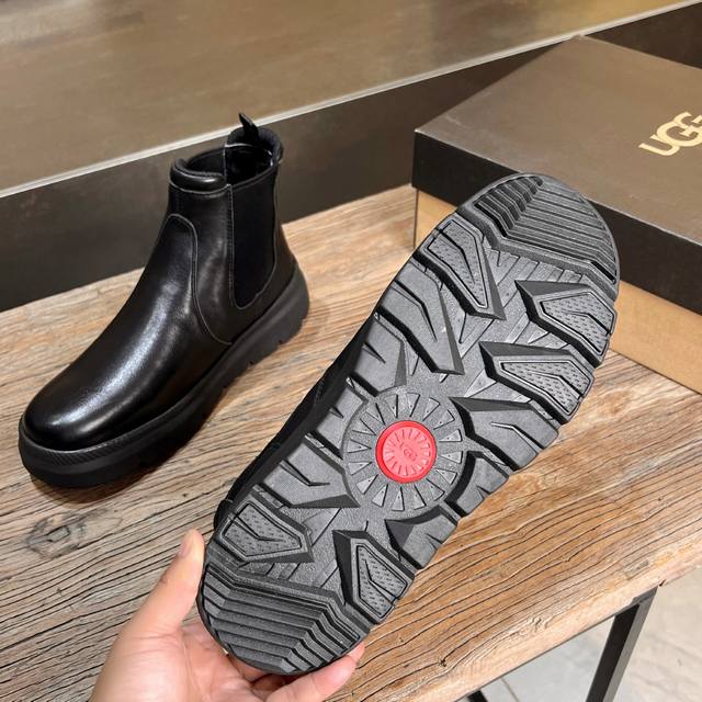 Ugg 秋季新款男士舒适平底圆头时尚短靴休闲切尔西靴 1152050,牛皮磨砂面+内里真羊毛+橡胶大底,颜色:黑色,码数40-44