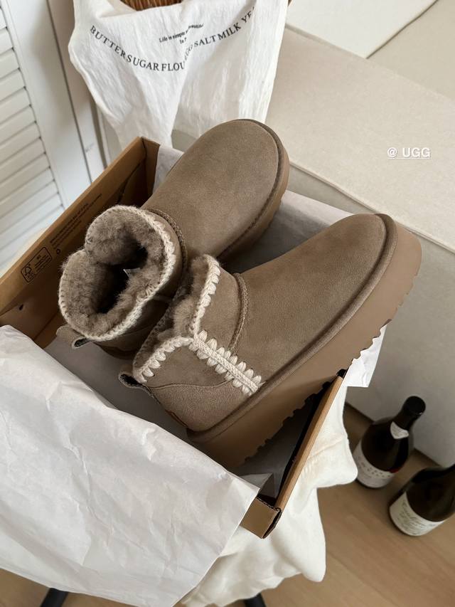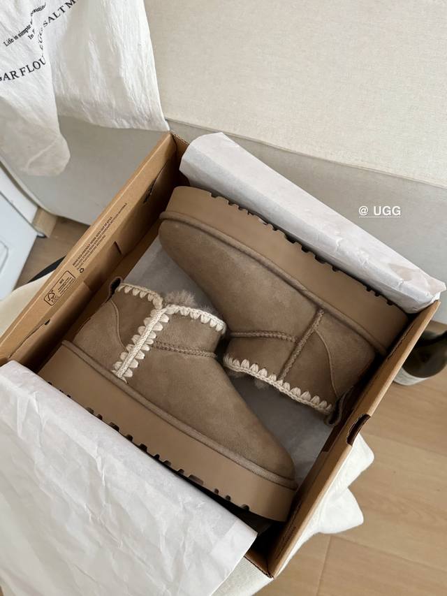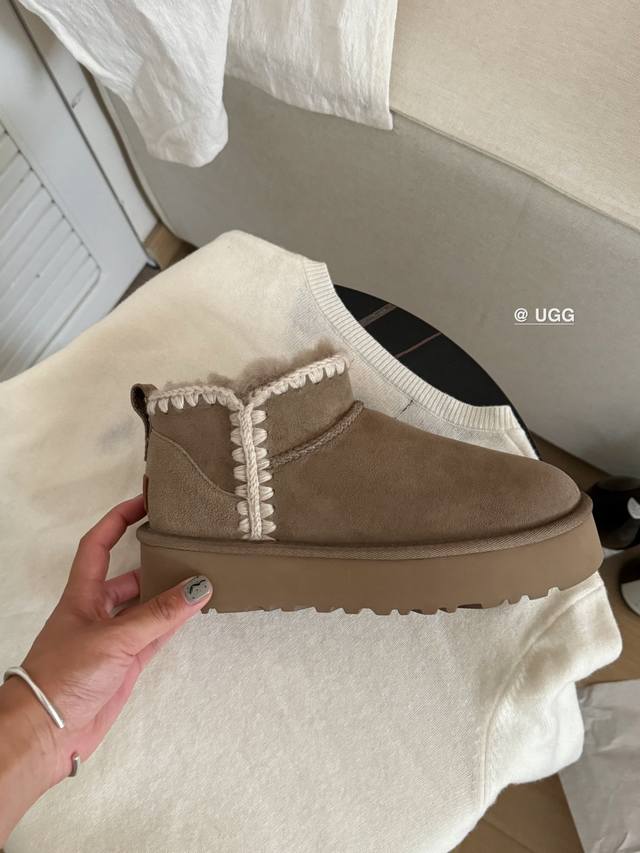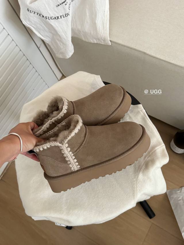 Ugg 迷你厚底 |毛线编织 A级羊皮毛一体 +手工编织毛线 柔软轻翼高弹大底 Size: 35-40