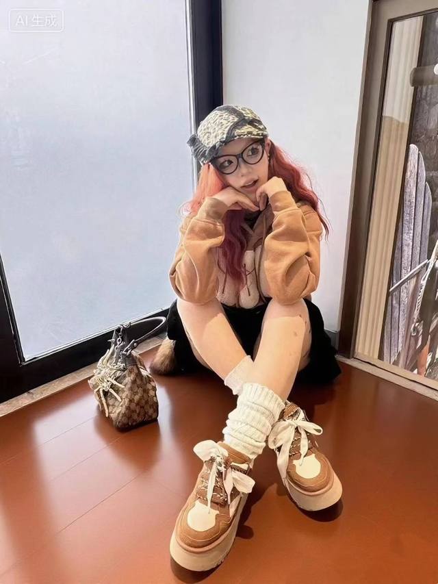 Ugg 2025梅尔休闲,春秋新款来袭,丝带+编织鞋带的组合,