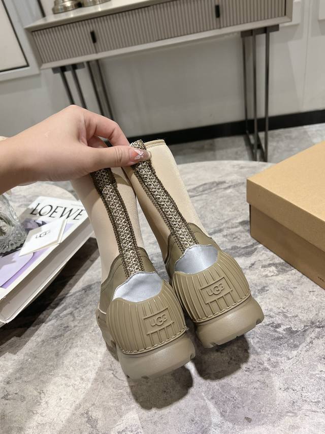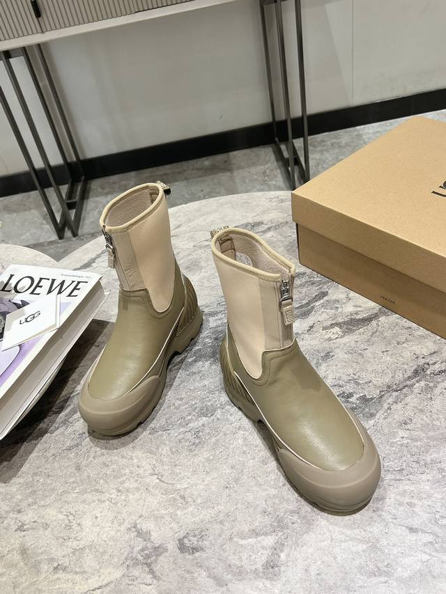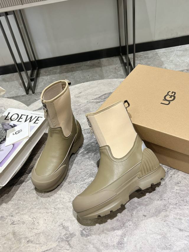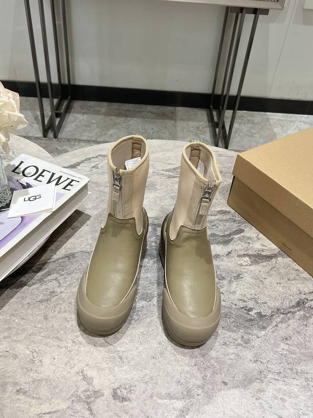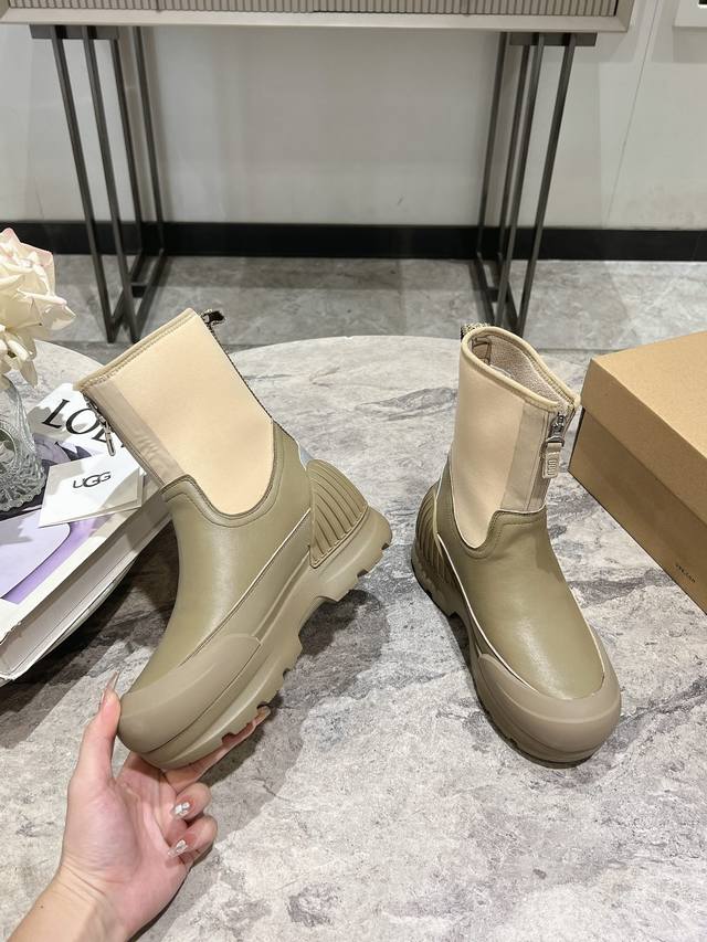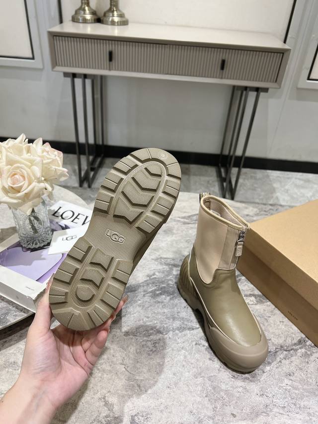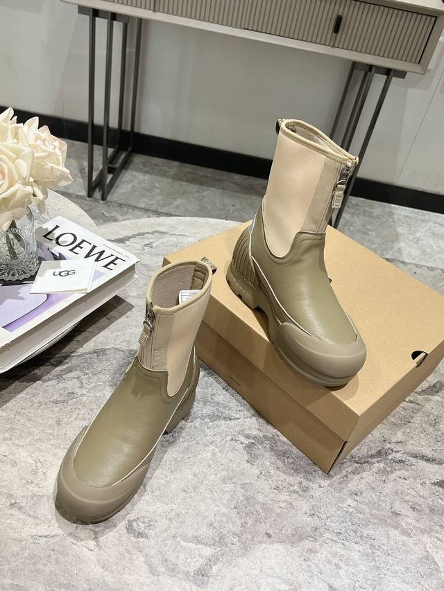 Ugg 24秋冬新款女士休闲时尚舒适厚底增高圆头套筒拉链弹力靴