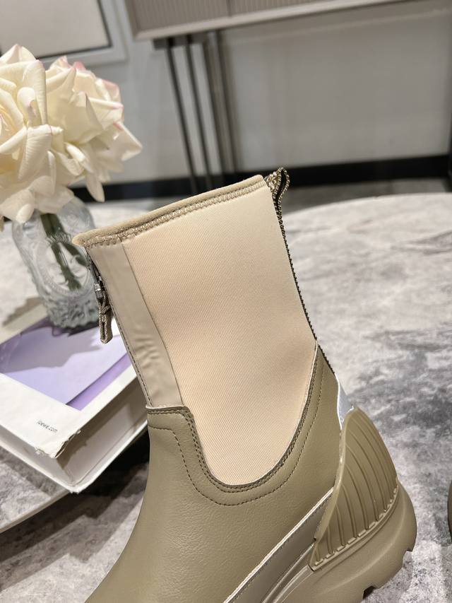 这款弹力靴亮点在于通过色彩 版型及材质等的组合搭配 穿出一种轻松轻盈的氛围感