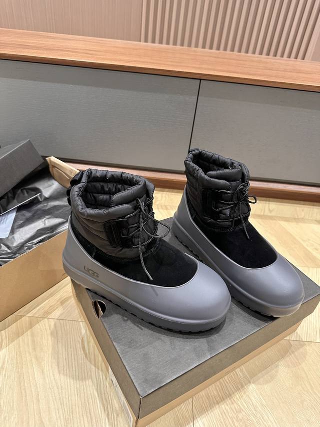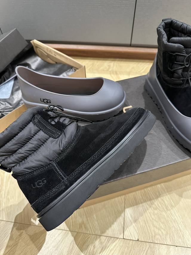 ugg P: 情侣款,Size:35-44. Ugg2024秋季新款两穿胶套雪地靴 麂皮拼羽绒内羊毛 Eva底加胶套防污防水.