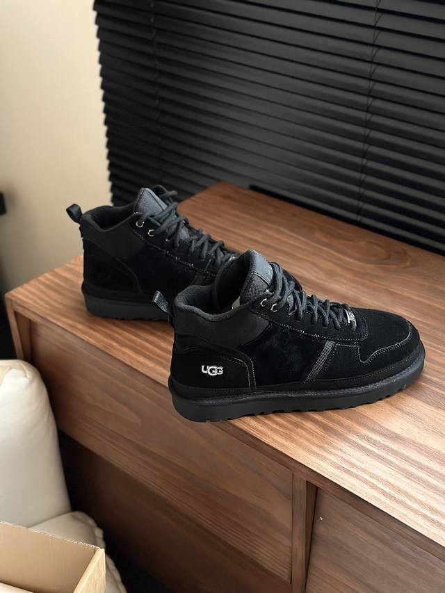 / ugg P: Size:39-44. Ugg2024秋季新款男士海兰德男款雪地靴 舒适平底纯色经典系带圆头时尚休闲鞋,牛剖层革鞋面搭配羊毛内里,Eva防滑大底,