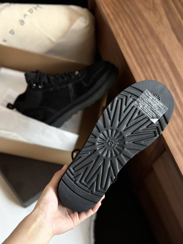 Ugg2024秋季新款男士海兰德男款雪地靴 舒适平底纯色经典系带圆头时尚休闲鞋,牛剖层革鞋面搭配羊毛内里,Eva防滑大底,简洁剪裁质感满满,轻盈舒适透气
