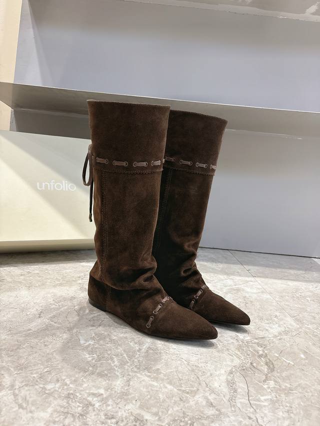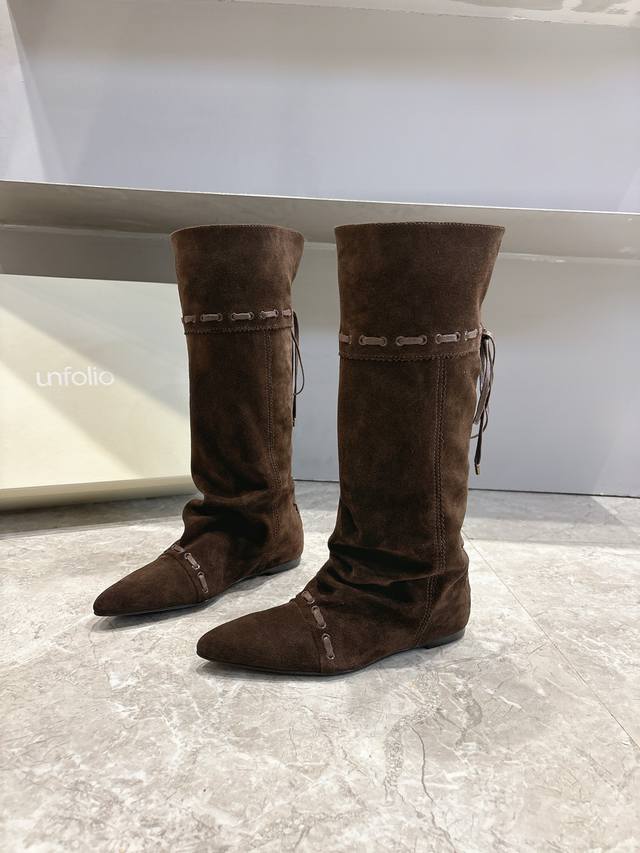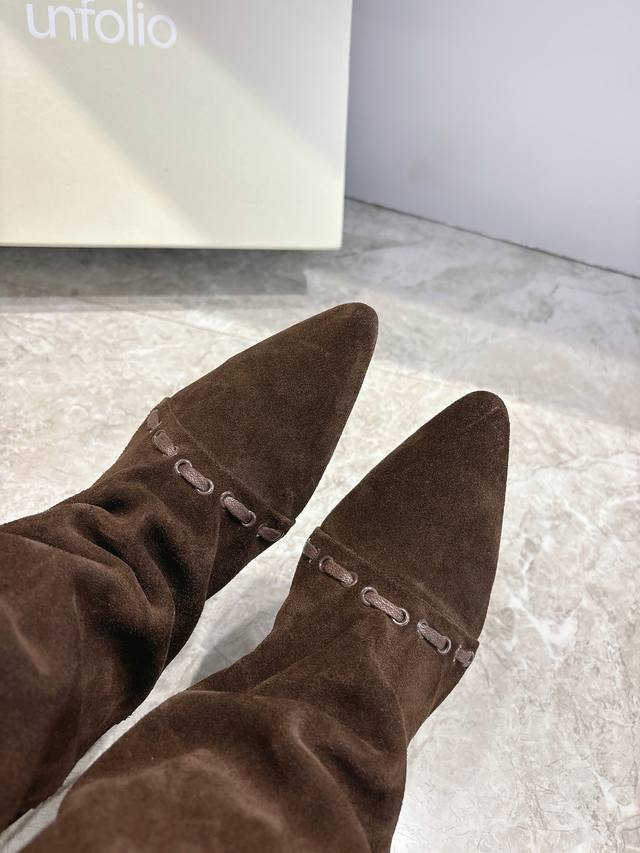 / Unfolio 25秋冬新款复古西部牛仔靴,感受秋日与西部复古风的碰撞 通勤和日常穿搭都能轻松Hold住 对版高丝光麂皮面料,羊皮内里,意大利 进口注塑大底 内