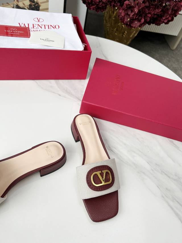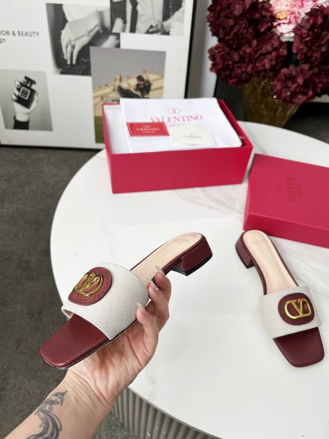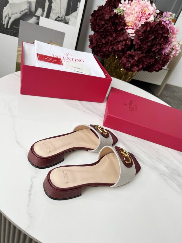valentino2025春夏爆款沙滩旅游拖鞋 鞋面大V字Logo金属饰扣。原版开模鞋跟,高度斜度1:1还原 。新季米开理系列大作,百变爆款拖。鞋面顶级混种小羊皮,内里小羊皮。真皮鞋底。多彩系列。穿着轻便,适合旅游沙滩出行。卡点拍照。跟高2.5厘米。