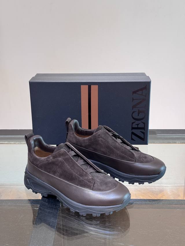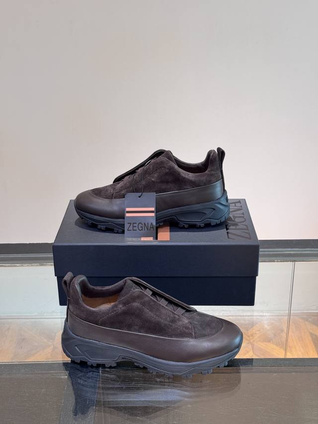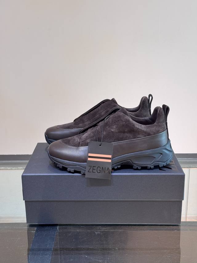 zegn* 杰尼亚2024秋季新款,绒面革 Triple Stitch Monte 奢华休闲鞋 这款绒面革剖层革 Triple Stitch Monte 奢华休闲鞋百搭实穿,四季皆宜。杰尼亚标志性三重交叉松紧细节确保穿脱灵便,同时令人联想到品牌精裁夹克的传统手工缝制工艺,致敬杰尼亚的精湛工艺传承。此款鞋履风格优雅而休闲,配有皮革衬里。全进口皮料 交叉松紧 深 Foliage 色小牛皮衬里 鲜明色调 Vibram 轻质大底升级版抓地鞋底 Sanitized 可拆卸鞋床 能够更好的适应远足登山等需求!