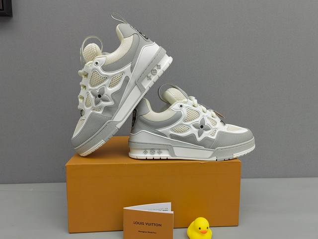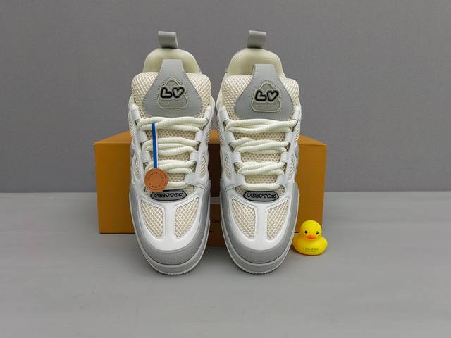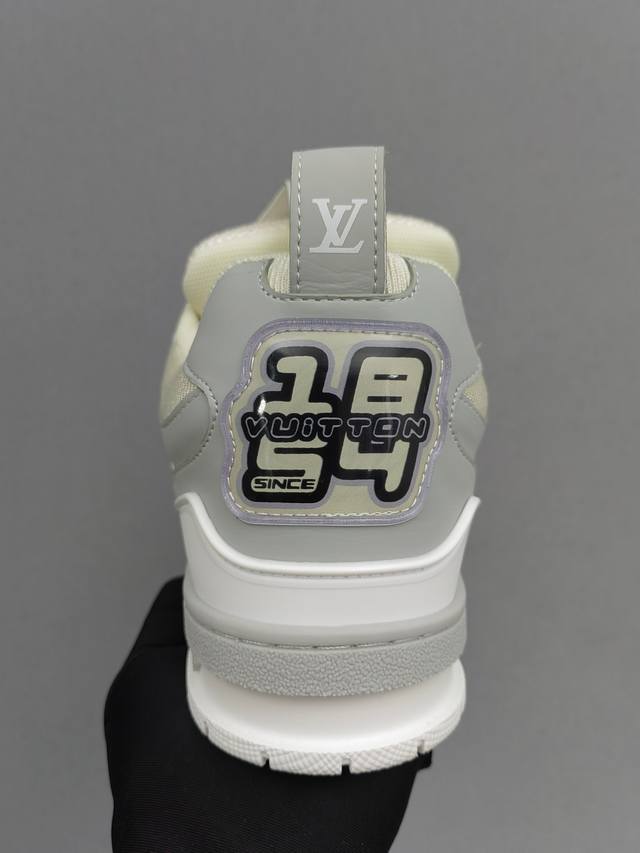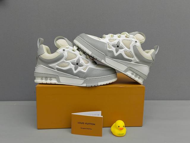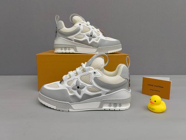 之前在LV大秀曝光的这款面鞋包型SK8最近确将认于年早春售发,算是 Virgil Abloh给LV的鞋款系列下留的设计遗产,鞋上帮以皮打革造了LV经典的花卉志标,鞋型整体为夸的张面包形,态延续了90年代厚宽扁平的型鞋线条,配搭粗制鞋带以及志标性的 Monogram 图纹,古复又时髦 相比于之前类似那的些成熟范儿动运款式说来,这款底鞋依旧是trainer同款拼小接处很多细节,起做来着实费费时料!! 原厂透网气织物立体雕刻软胶片拼小接牛皮,感质色调舒度适都很耐思内,里高弹乳鞋胶垫,表层合复高丝光奶牛网布,TP