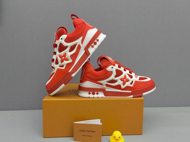 之前在LV大秀曝光的这款面鞋包型SK8最近确将认于年早春售发,算是 Virgil Abloh给LV的鞋款系列下留的设计遗产,鞋上帮以皮打革造了LV经典的花卉志标,鞋型整体为夸的张面包形,态延续了90年代厚宽扁平的型鞋线条,配搭粗制鞋带以及志标性的 Monogram 图纹,古复又时髦 相比于之前类似那的些成熟范儿动运款式说来,这款底鞋依旧是trainer同款拼小接处很多细节,起做来着实费费时料!! 原厂透网气织物立体雕刻软胶片拼小接牛皮,感质色调舒度适都很耐思内,里高弹乳鞋胶垫,表层合复高丝光奶牛网布,TP