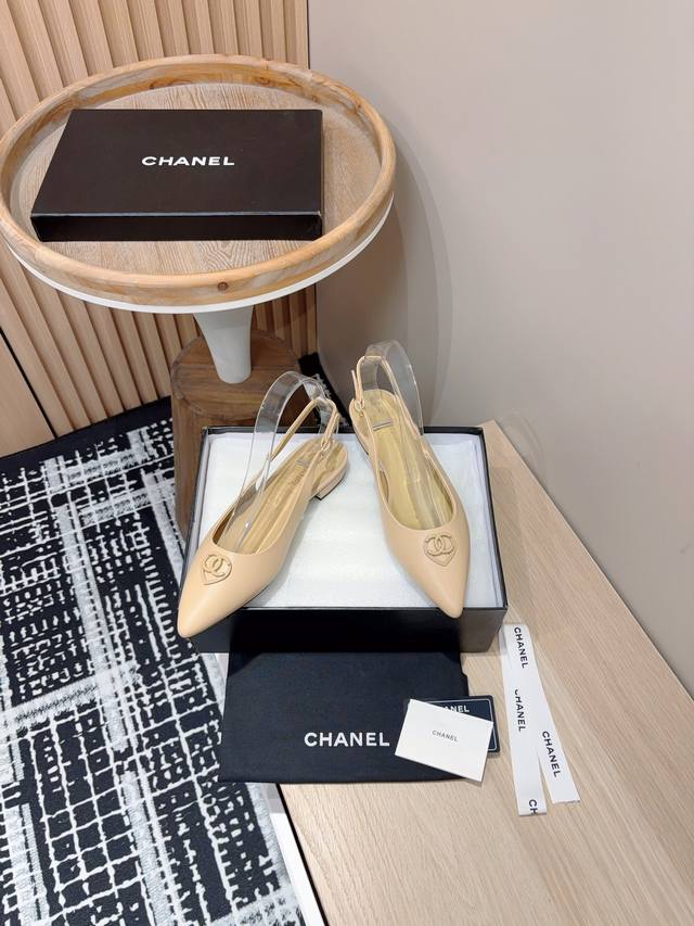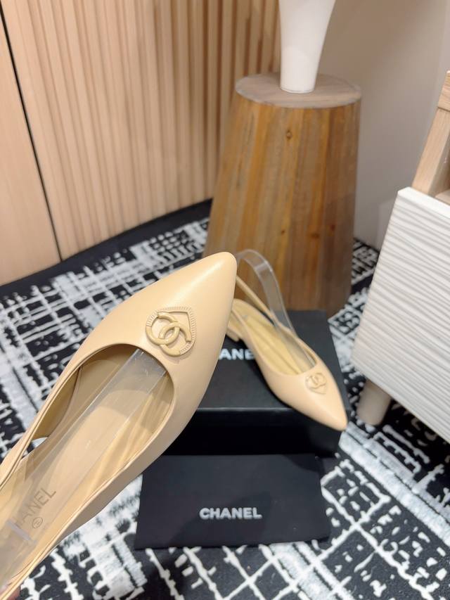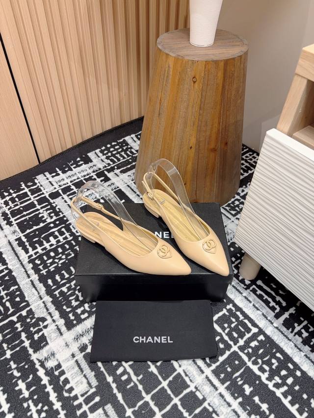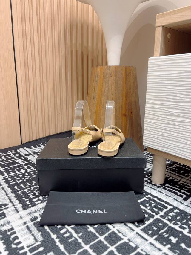 25Ss春夏新款chane*小香尖头平底单鞋 凉拖鞋