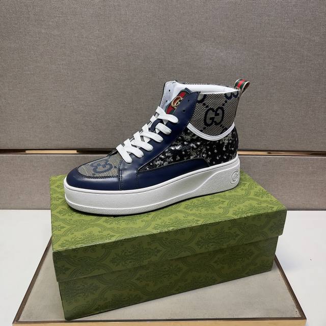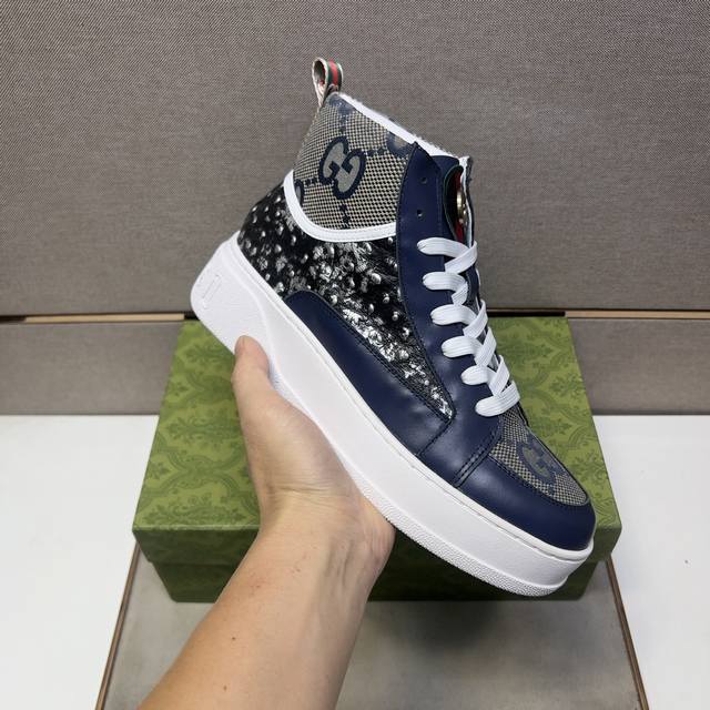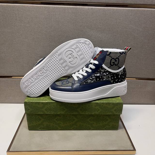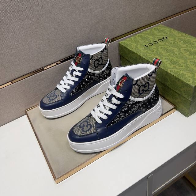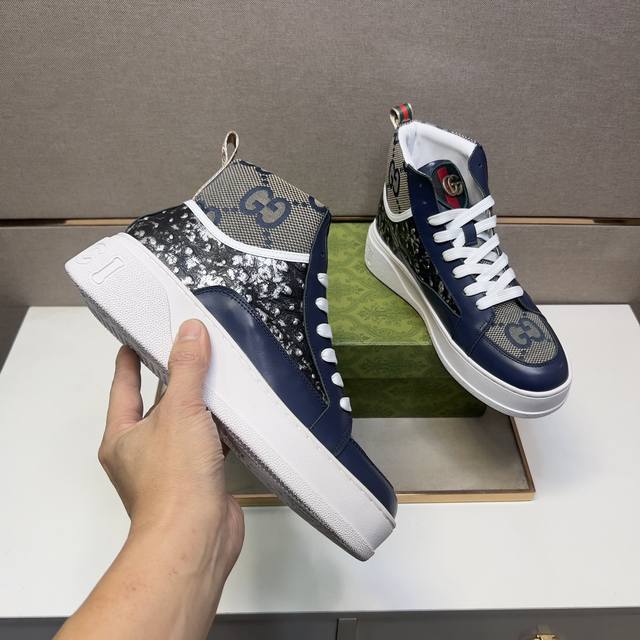 出厂价 古~ 男士休闲高帮鞋 2024Z柜同步发售 码数:38-44# 2个颜色鞋面选用多材质拼接真皮内里,舒适透气,鞋底:原版舒适耐磨大底,实物拍摄实物更赞