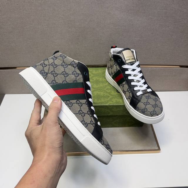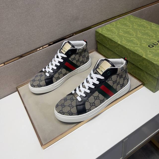 出厂价 古~ 男士休闲高帮鞋 2024Z柜同步发售 码数:38-44# 2个颜色鞋面选用多材质拼接真皮内里,舒适透气,鞋底:原版舒适耐磨大底,实物拍摄实物更赞
