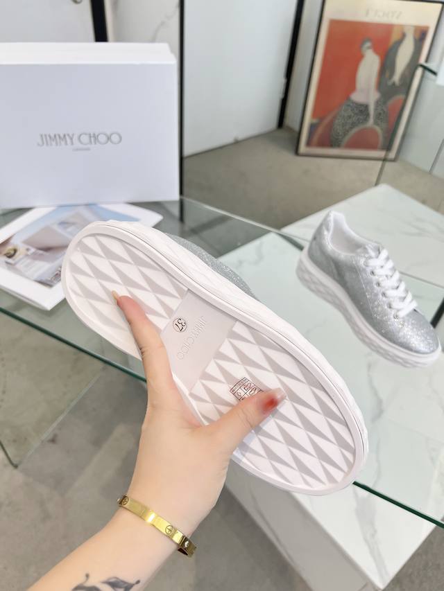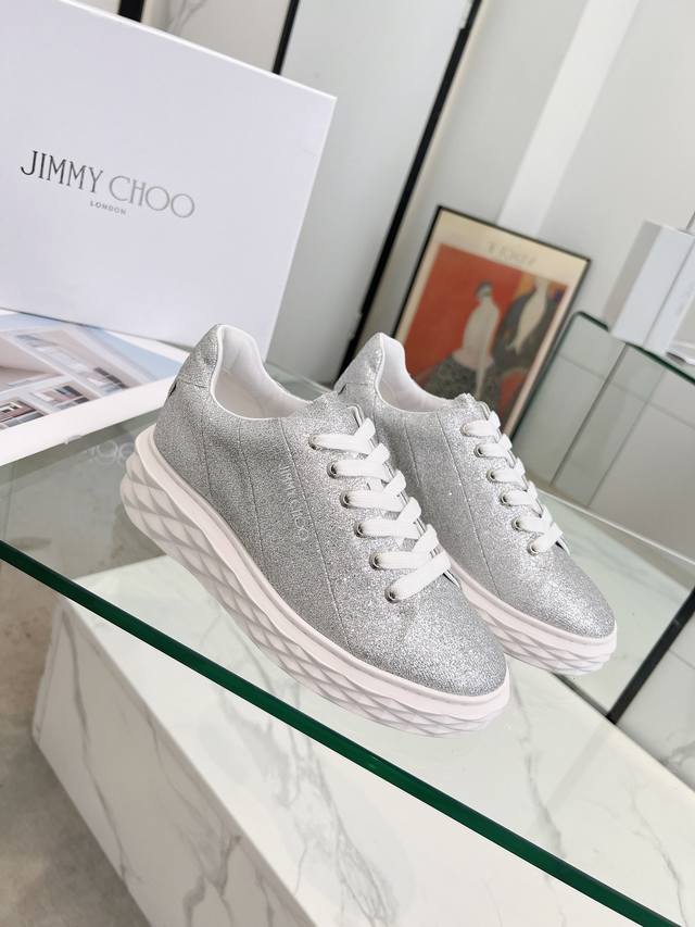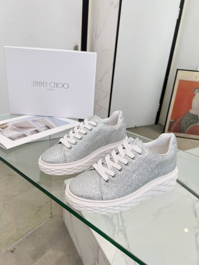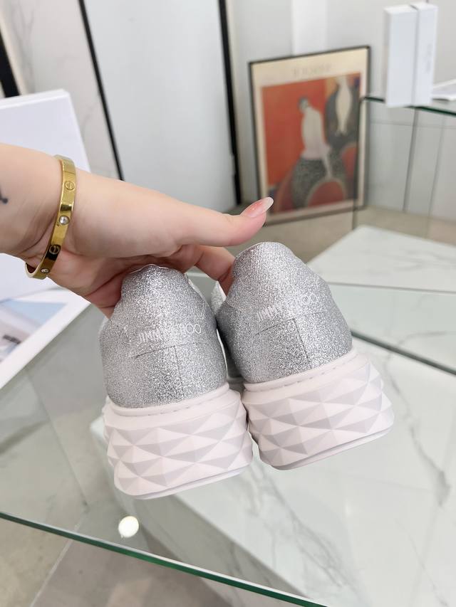 Jimmy Choo周仰杰 2024春夏jc新款diamond 运动鞋系列上新鞋面采用原版进口牛皮拼接鞋底采用品牌元素防钻石多面切割塑形立体感十足鞋底渐薄厚增高设计让视觉没有丝毫压迫感上脚更舒适一款时尚、舒适、百搭、奢华于一体的diamond运动鞋值得拥有♀