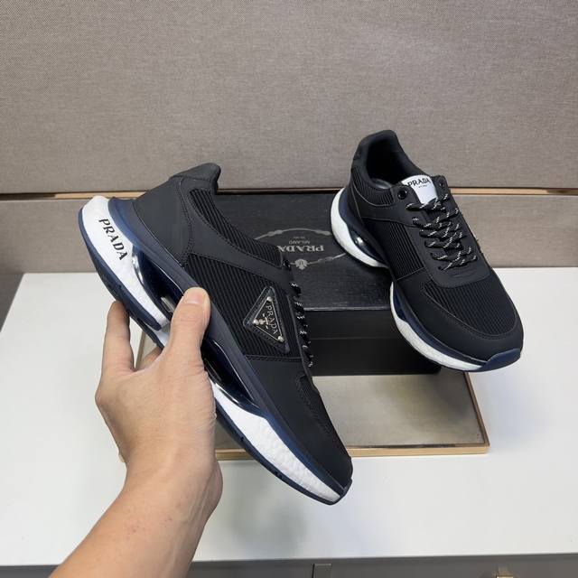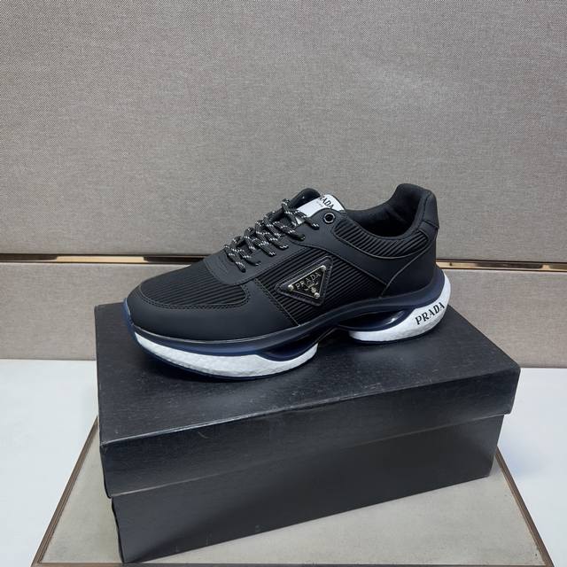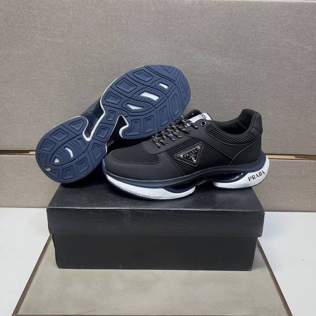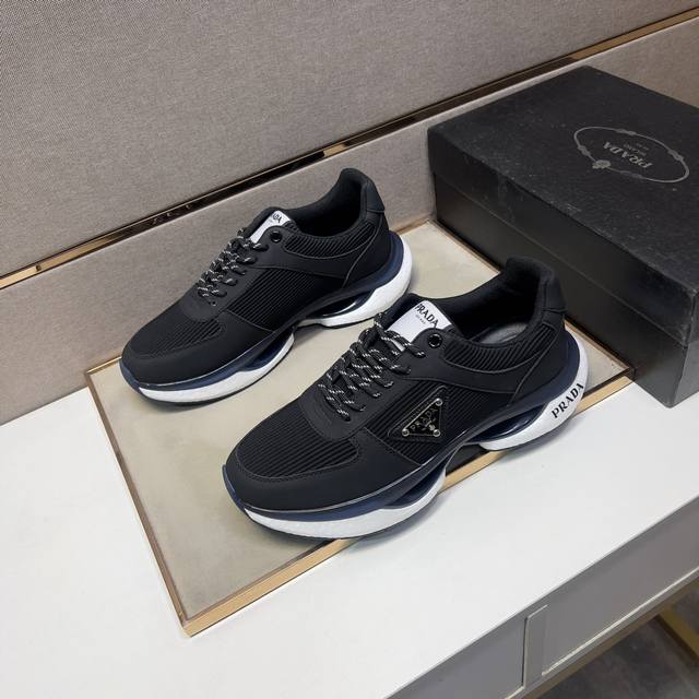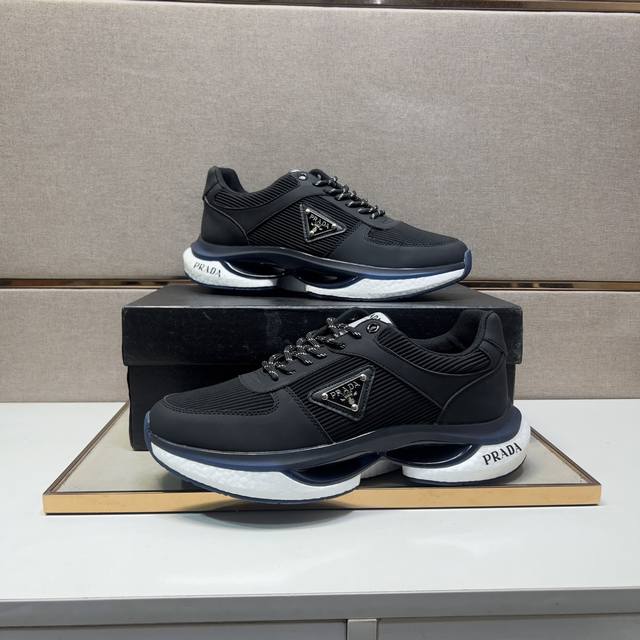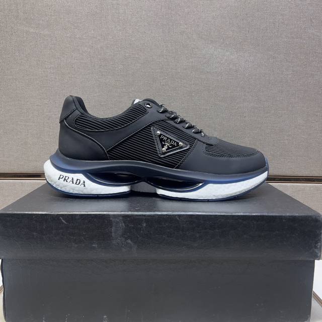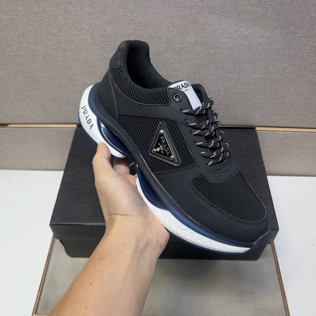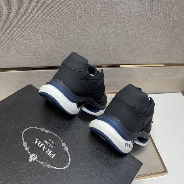实价 Prad*拉达新品男士时尚运动鞋,进口小牛皮材质拼接原版专用防水布料,内里头层羊皮搭配鞋身侧经典三角标logo装饰,原版橡胶大底,防滑耐磨,舒适度极高的经