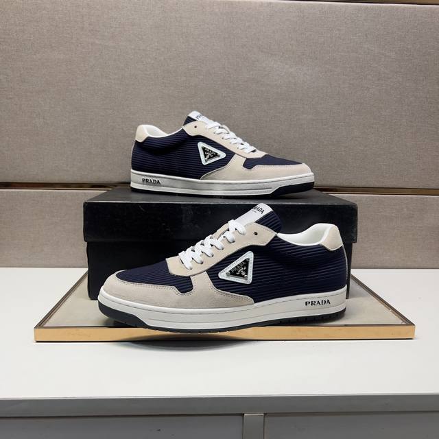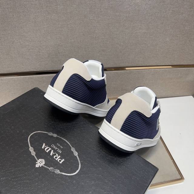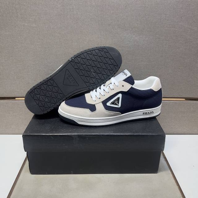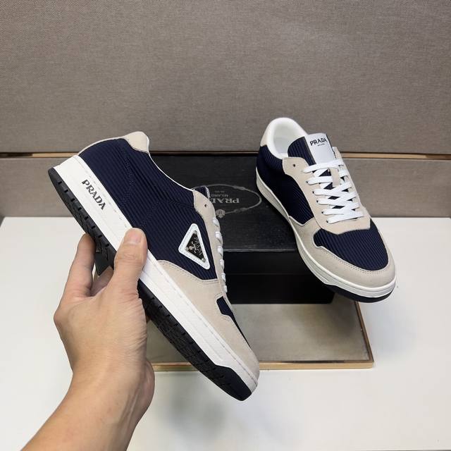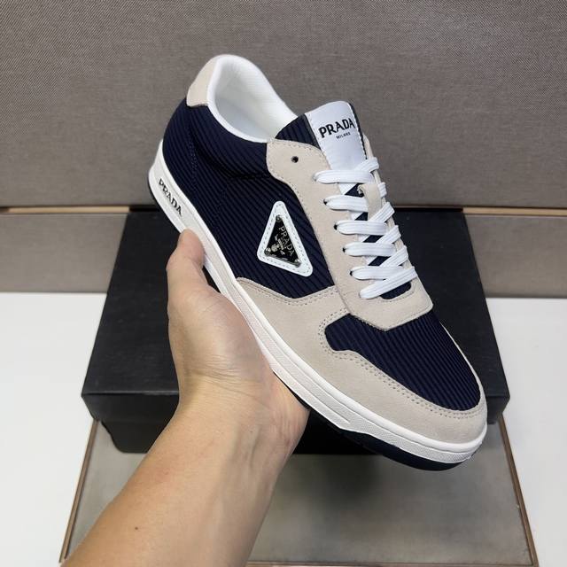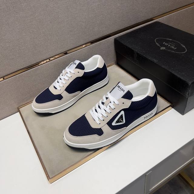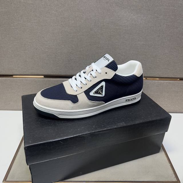 38-45 Prada 普拉达新款男士真皮运动鞋,市面最高版本 、欢迎任意对比!原版皮料质感极佳,超上档次!意大利进口胎羊网内里,可拆式垫!奢华用料、精细做工,