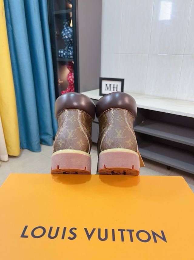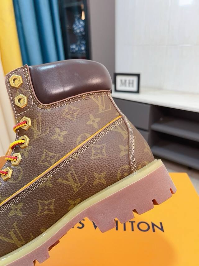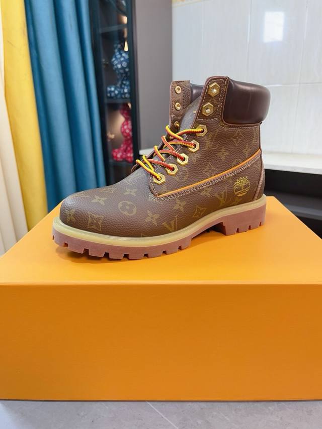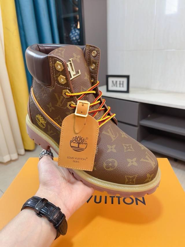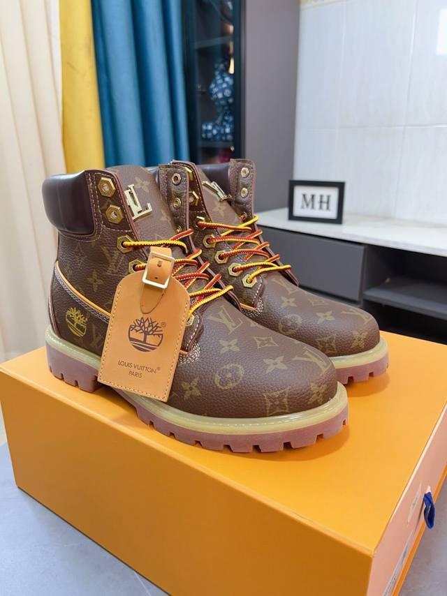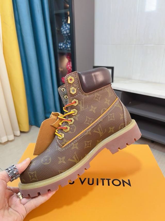 出厂价 顶级版本:情侣款LV x Timberland 添柏岚 联名款 老花 压花 大黄靴 及踝靴 短靴