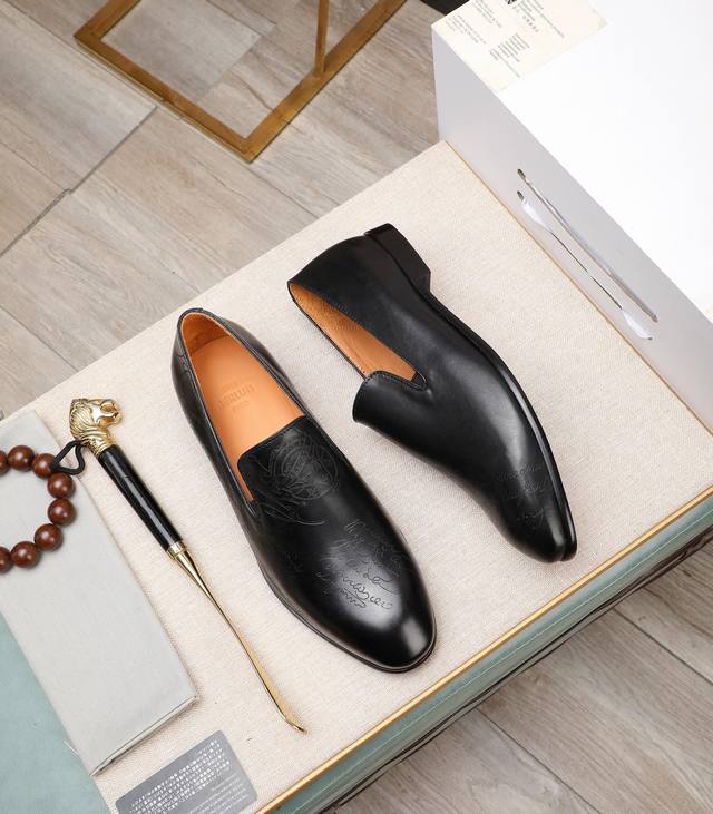 出厂价 Berluti 布鲁提高端真皮大底正装皮鞋,采用进口牛皮鞋面 柔软有型,手工改色工艺,低调奢华气质,舒适透气版型,小牛皮真皮垫脚 进口真皮大底,彰显不凡态度 全套专柜原包装
