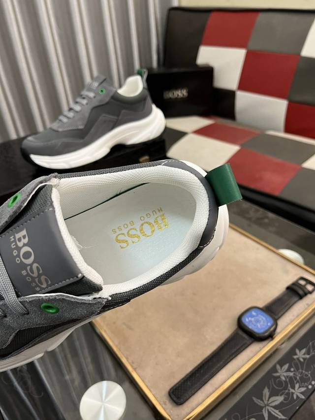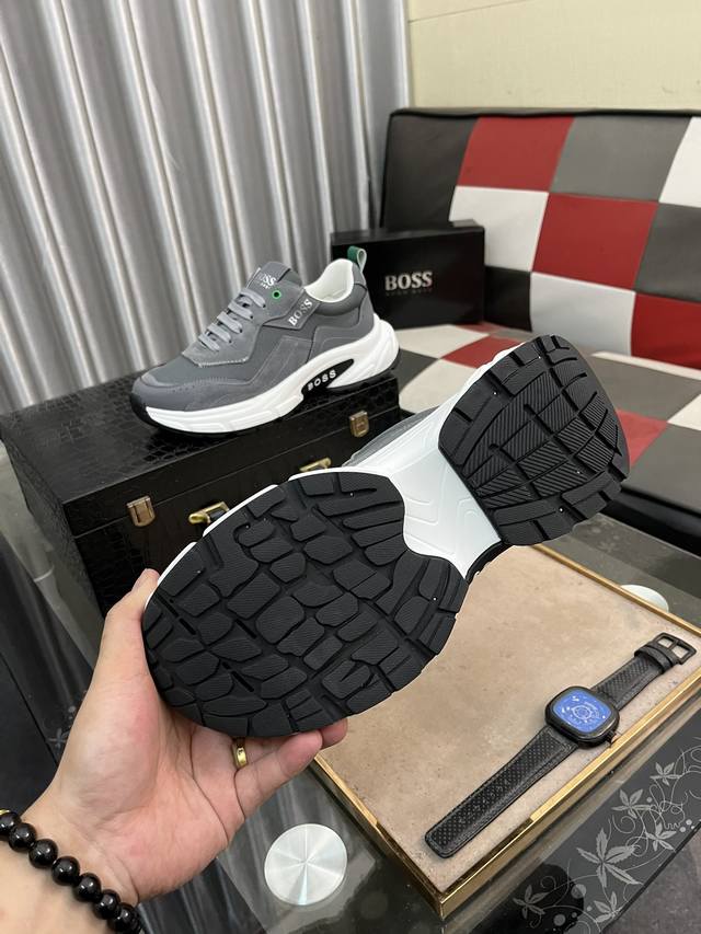 Boss男士休闲运动鞋,原版开模,头层牛皮材质,纯棉内里透气不闷脚 上脚柔软舒适 Tpu大底脚感轻便!Size:38-44