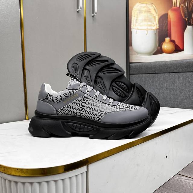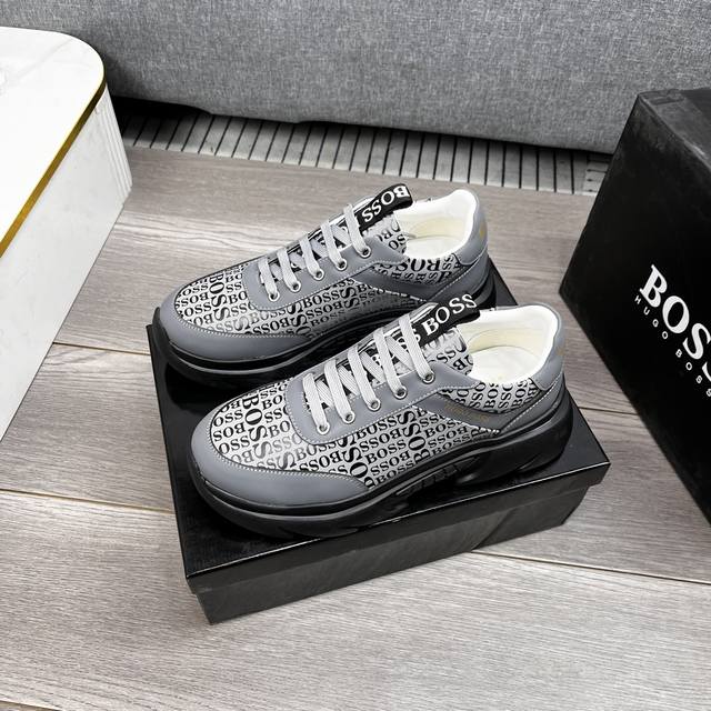 / 出厂价 Boss新款休闲运动鞋 时尚百搭, 版型简洁大气, 面料采用进口牛皮,羊皮内里,原版耐磨橡胶大底,独家新款,实物拍摄,三色可选,码数:38-44, 45