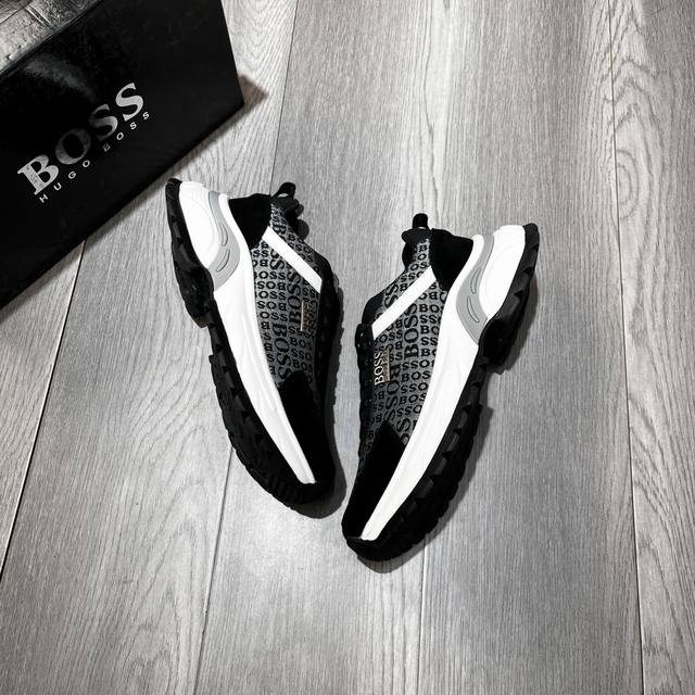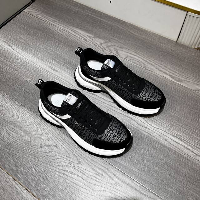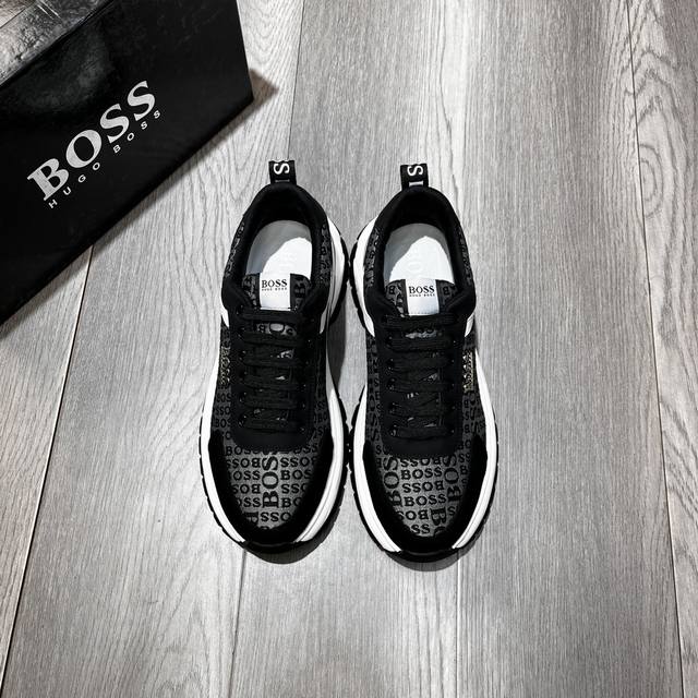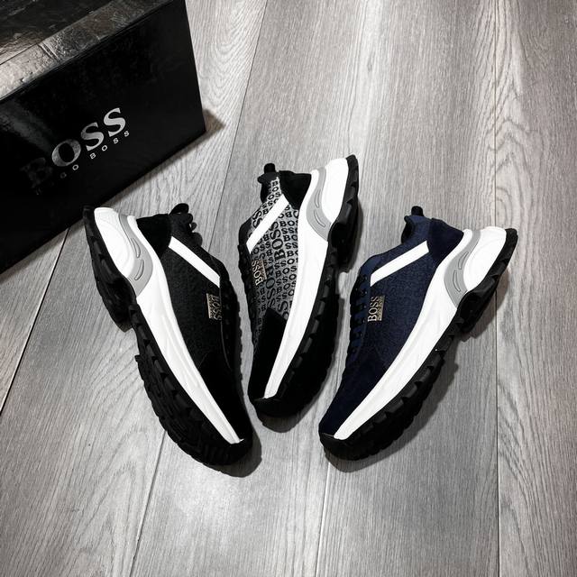 / 出厂价 Boss新款休闲运动鞋 时尚百搭, 版型简洁大气, 面料采用进口牛皮配原版布料,透气内里,原版耐磨橡胶大底,独家新款,实物拍摄,三色可选,码数:38-4