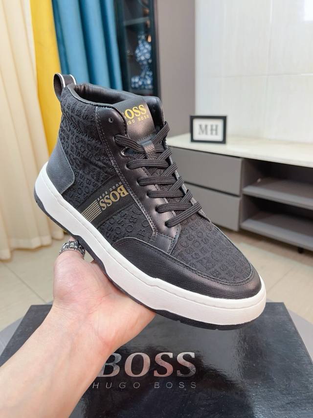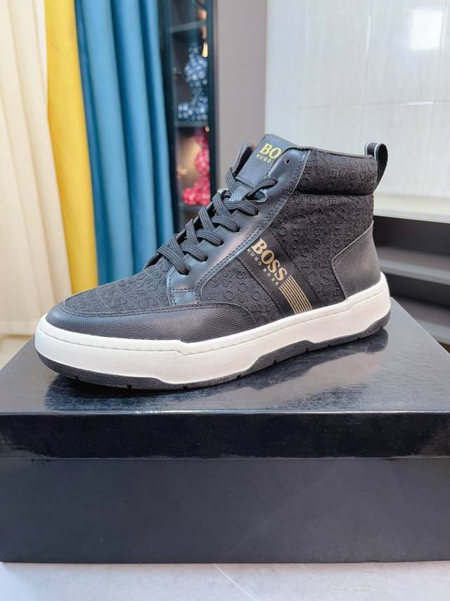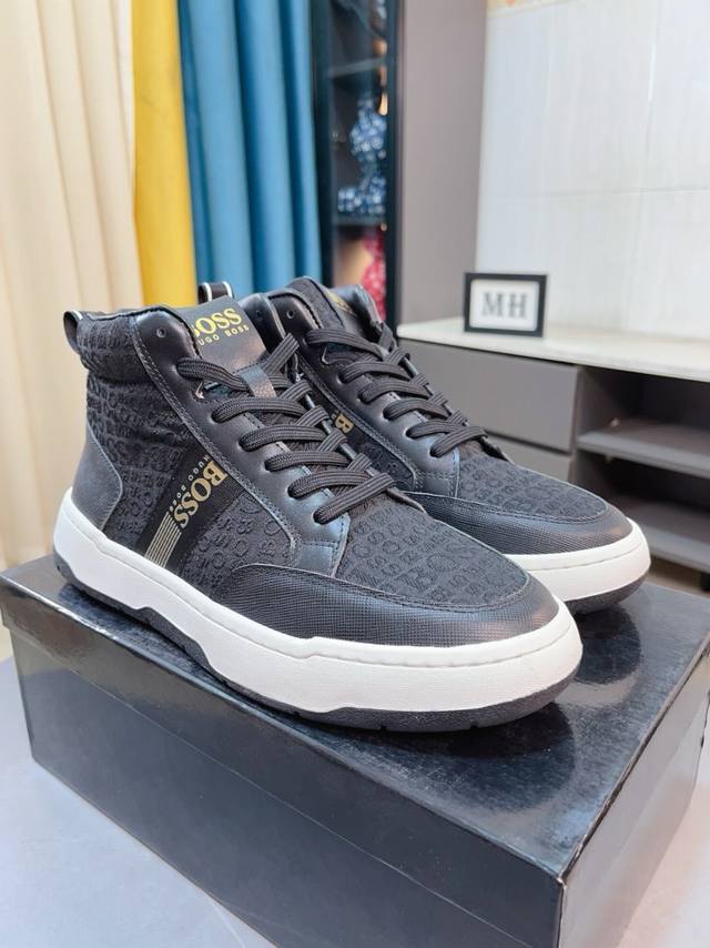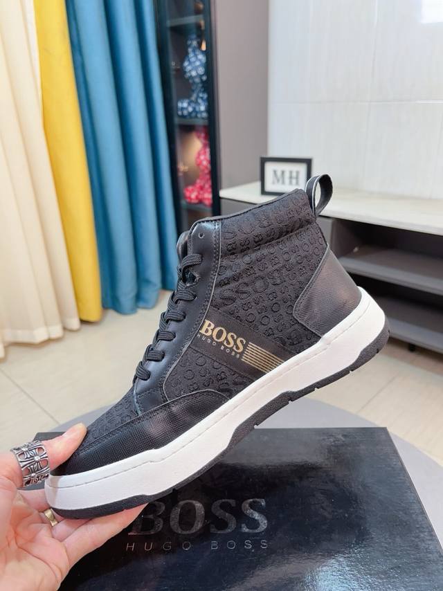 出厂价 Boss 高端高帮系列运动男鞋,以经典的设计成为永不落幕的时尚宠儿,经典的休闲造型 鞋面采用牛皮鞋面 品牌logo点缀 彰显品牌魅力;头层真皮里品牌专用大底,耐磨,轻便,码数:38-44