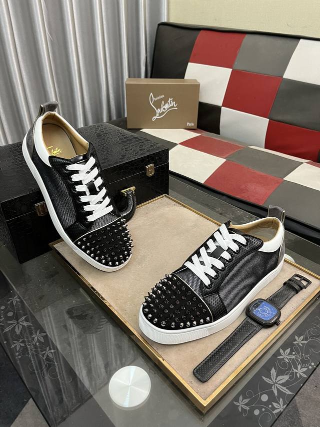 / 出厂价: Christian Louboutin Cl红底鞋 专柜烫钻系列,情侣休闲板鞋 独家热款发布活动乳胶垫脚成品大底车线全球供货 顶级版 :原版进口牛皮鞋