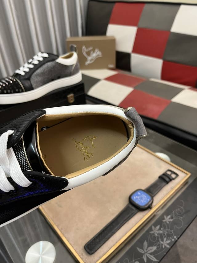 出厂价: Christian Louboutin Cl红底鞋 专柜烫钻系列,情侣休闲板鞋 独家热款发布活动乳胶垫脚成品大底车线全球供货 顶级版 :原版进口牛皮鞋面,顶级原版皮内里,原版开模tpu大底,原版1:1细节处理,原版鞋楦,大量现货供码数:38-44