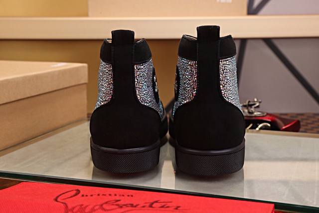 出厂价 Christian Louboutin Cl红底鞋 专柜烫钻系列,高帮情侣休闲板鞋 独家热款发布活动乳胶垫脚成品大底车线女35-40#男38#-46,全