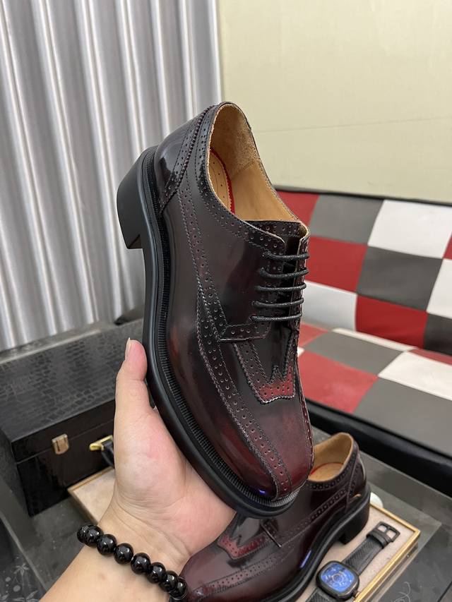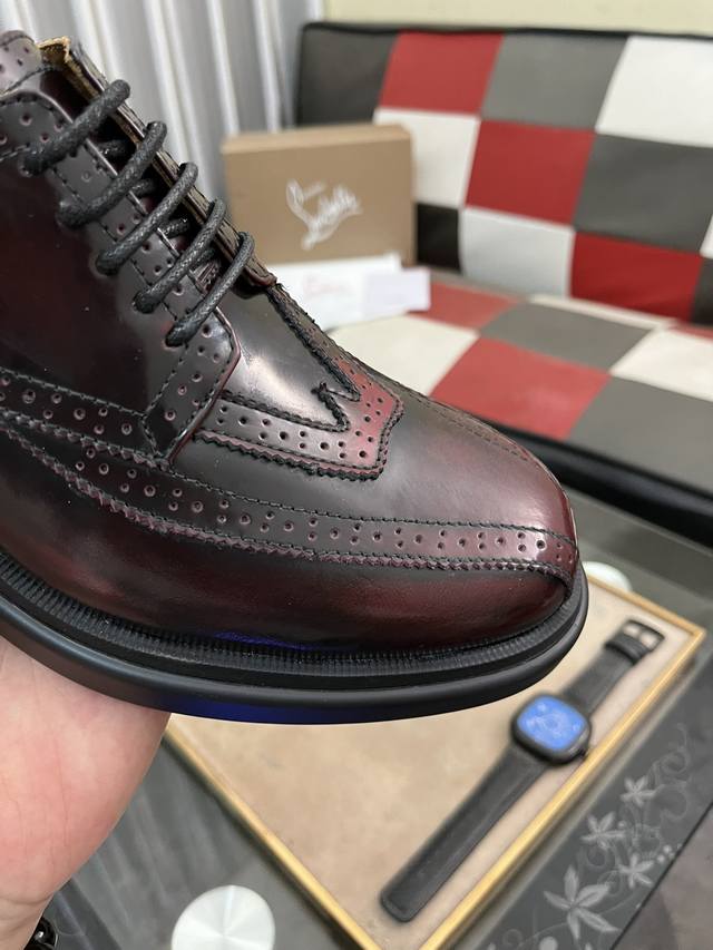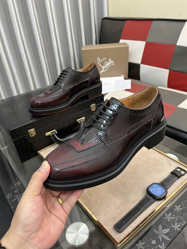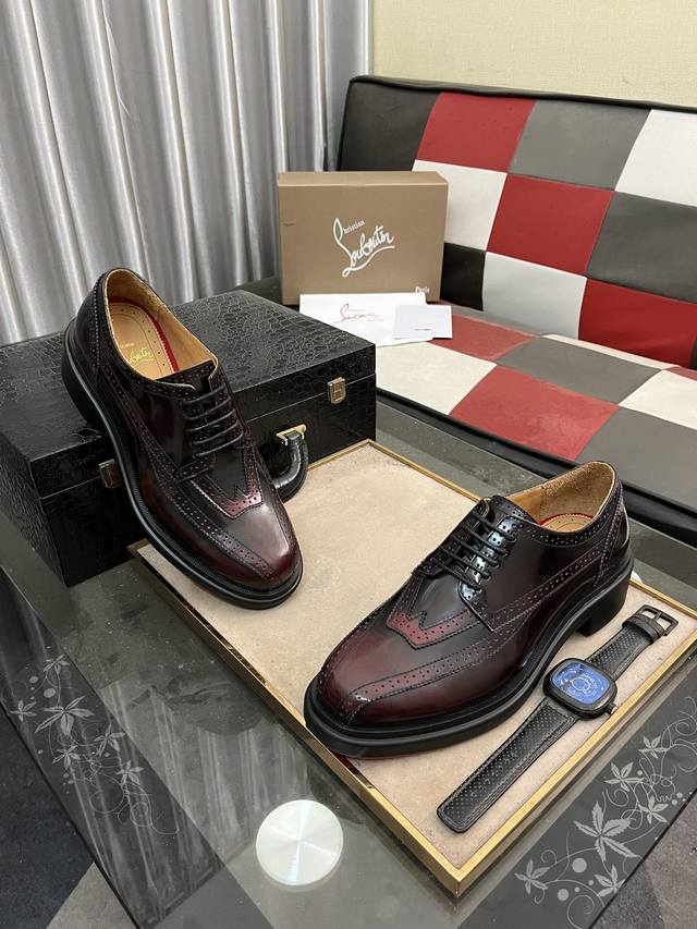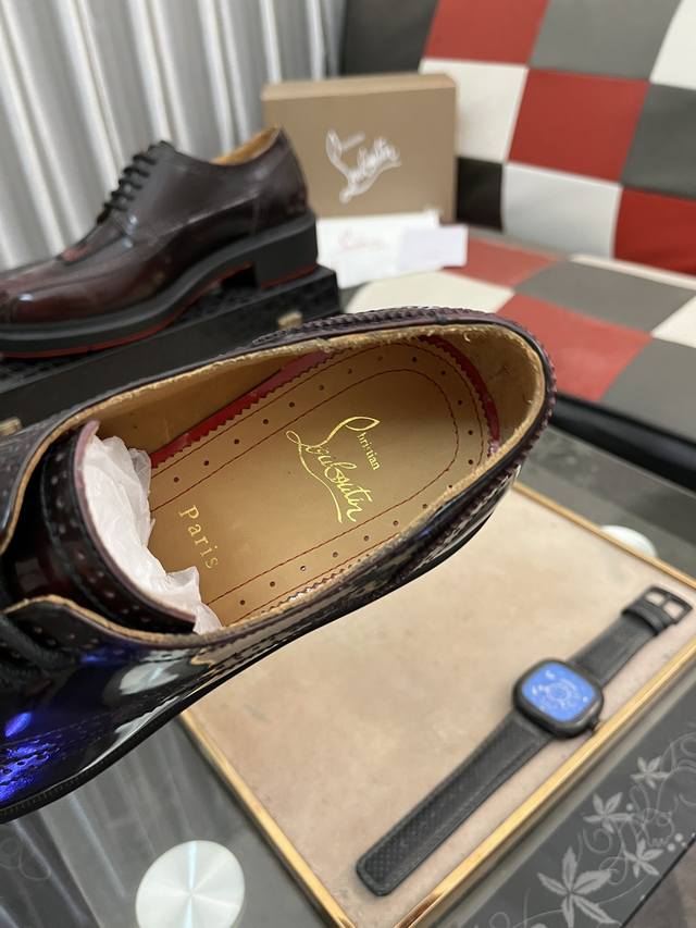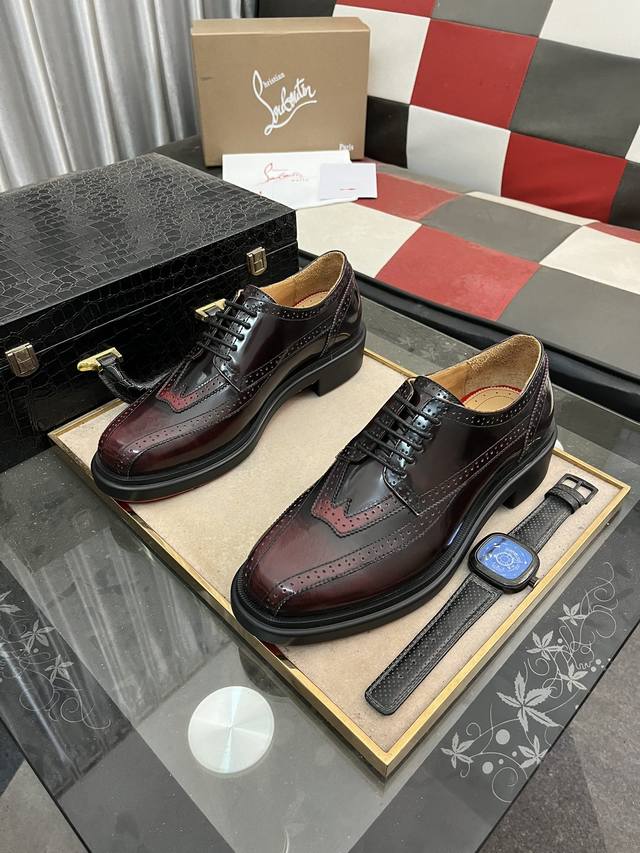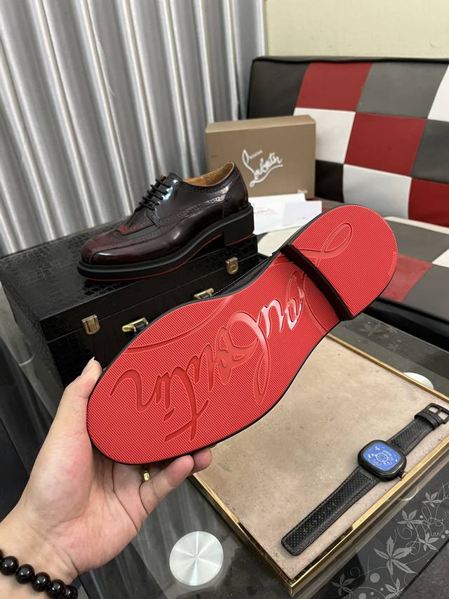 出厂价: Cl 新品乐福鞋皮鞋 Christia* Loubouti* 红底鞋便鞋 男士商务正装皮鞋 帮面采用进口牛皮 开边珠亮皮 手工缝制鞋面 圆柱形缎带滚边加持点缀 鞋面饰织带横带 饰以整排标志性金属铆钉 标志性红色大底、极致个性的鞋款 原色牛皮 红色水染牛皮内里 垫脚金色烫金logo标识 意大利原版真皮大底;精细做工 带给您奢华体验 懒人专属一脚蹬套脚穿着!原包装发售!