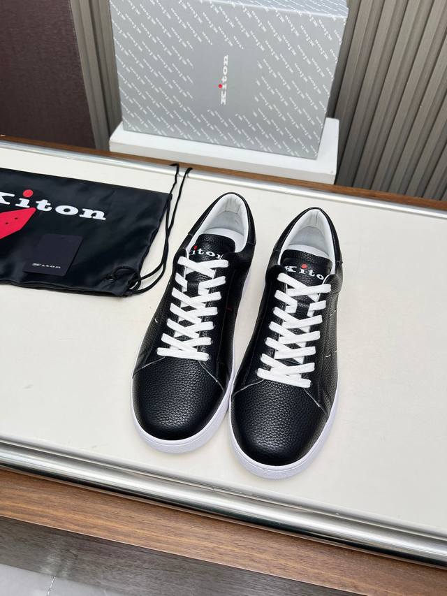 出厂价 Kiton秋冬新款休闲板鞋,甩纹牛皮面料,纳帕白色牛皮里,搭配kitin家经典元素撞色缝线工艺,简约而不简单,原版一比一开模防滑橡胶大底码数39-46