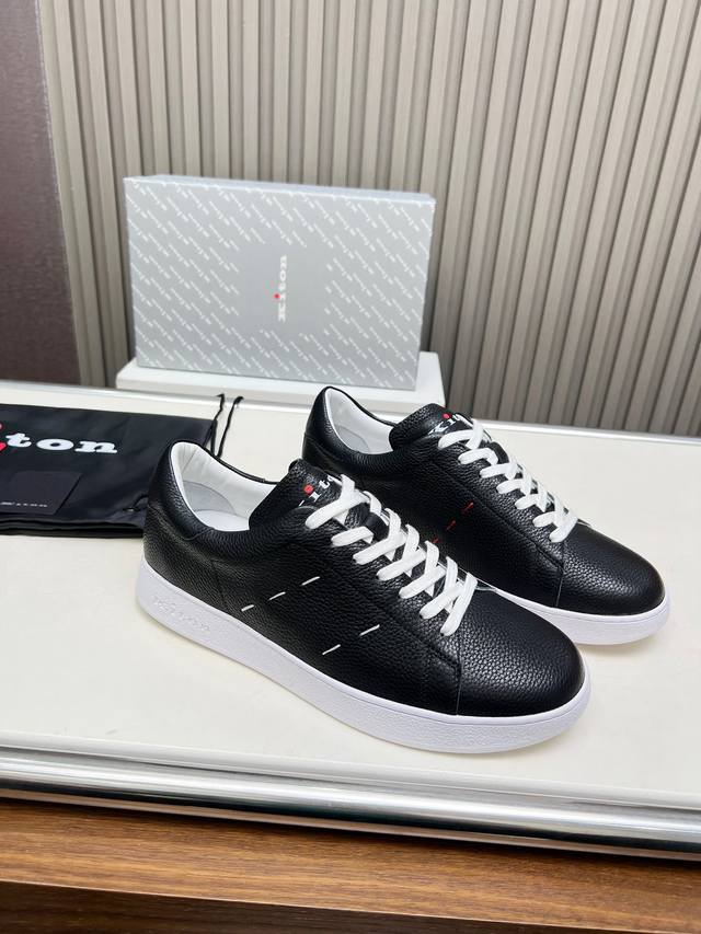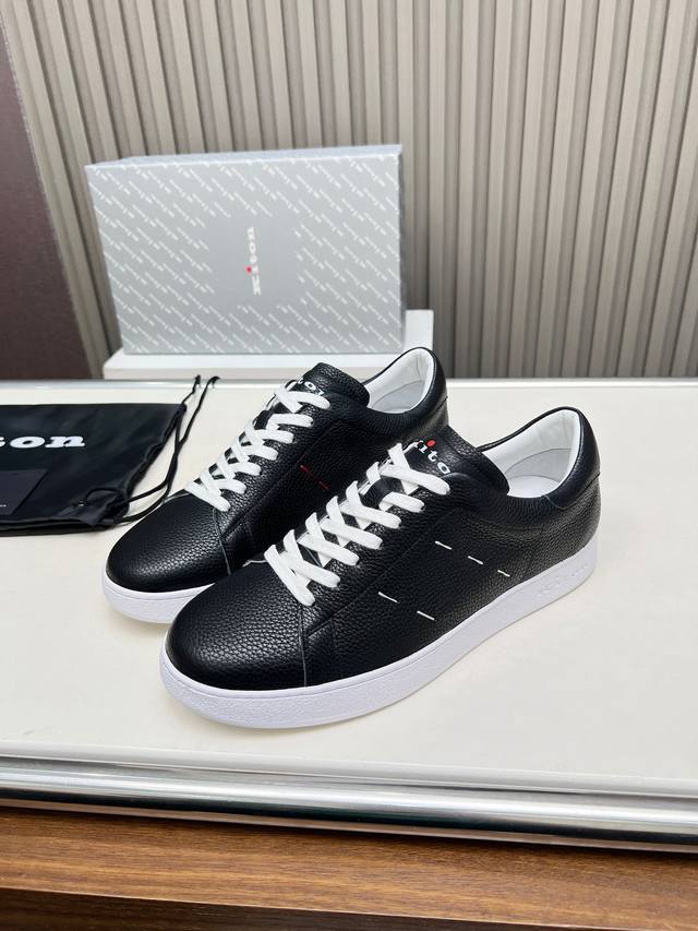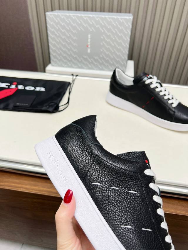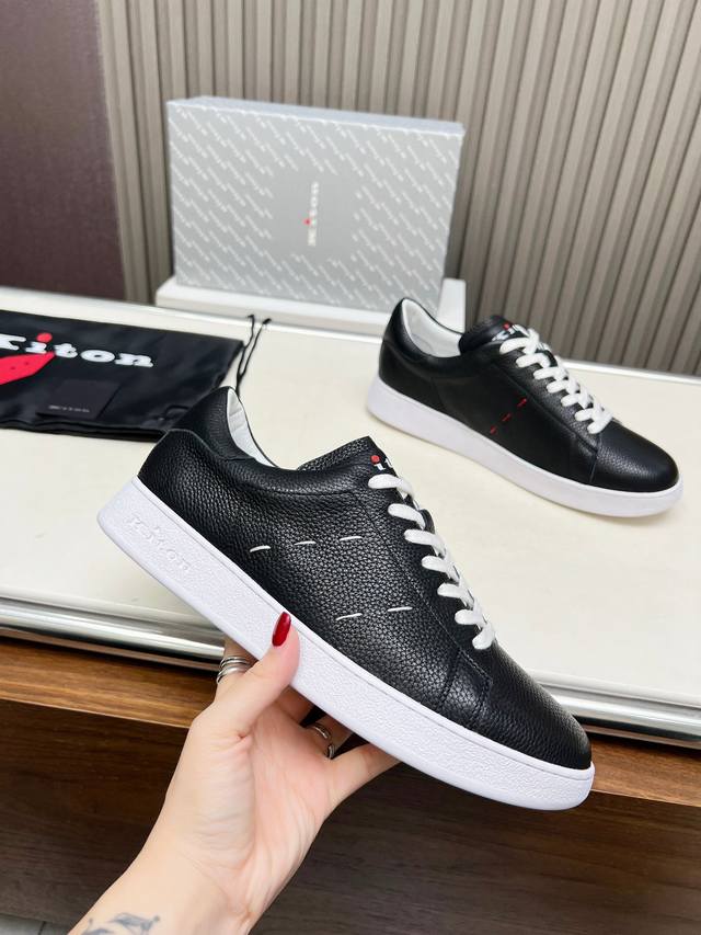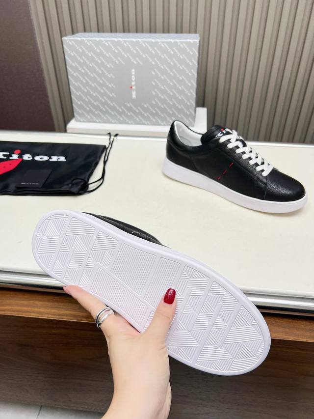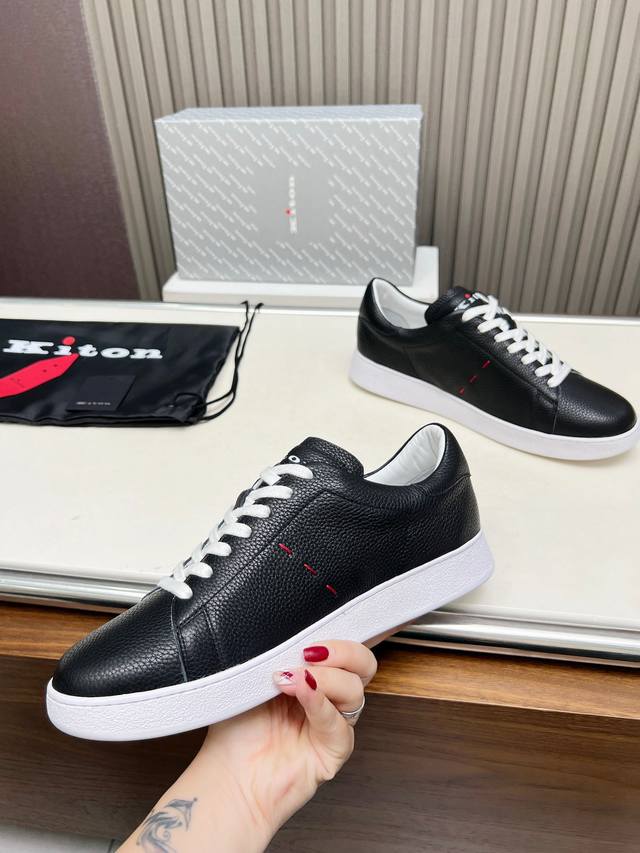出厂价 Kiton秋冬新款休闲板鞋,甩纹牛皮面料,纳帕白色牛皮里,搭配kitin家经典元素撞色缝线工艺,简约而不简单,原版一比一开模防滑橡胶大底