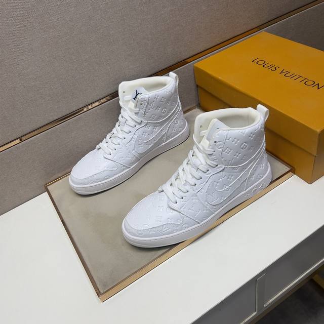 出厂价 LV~ 男士高帮休闲鞋 2024z柜同步发售 码数:38-44# 2个颜色鞋面选用多材质拼接网布内里,舒适透气,鞋底:原版舒适耐磨大底,实物拍摄实物更赞