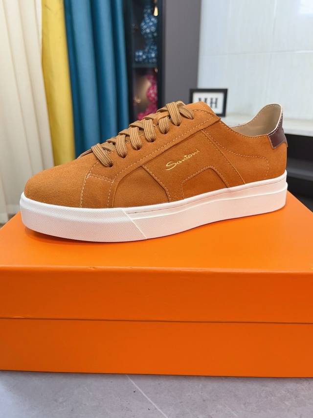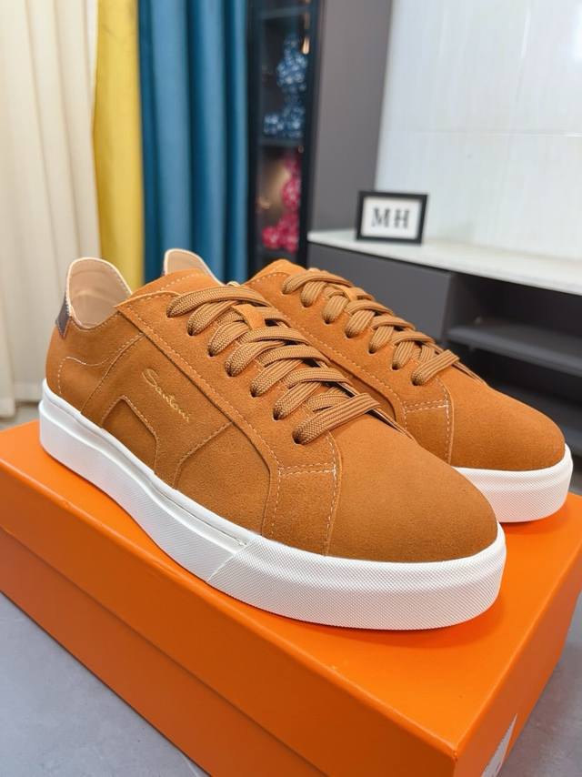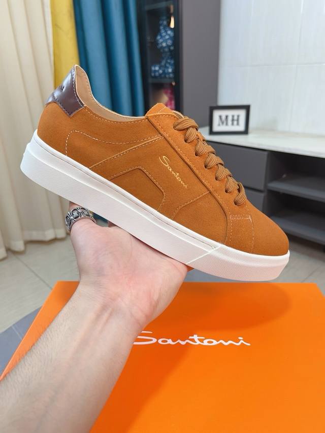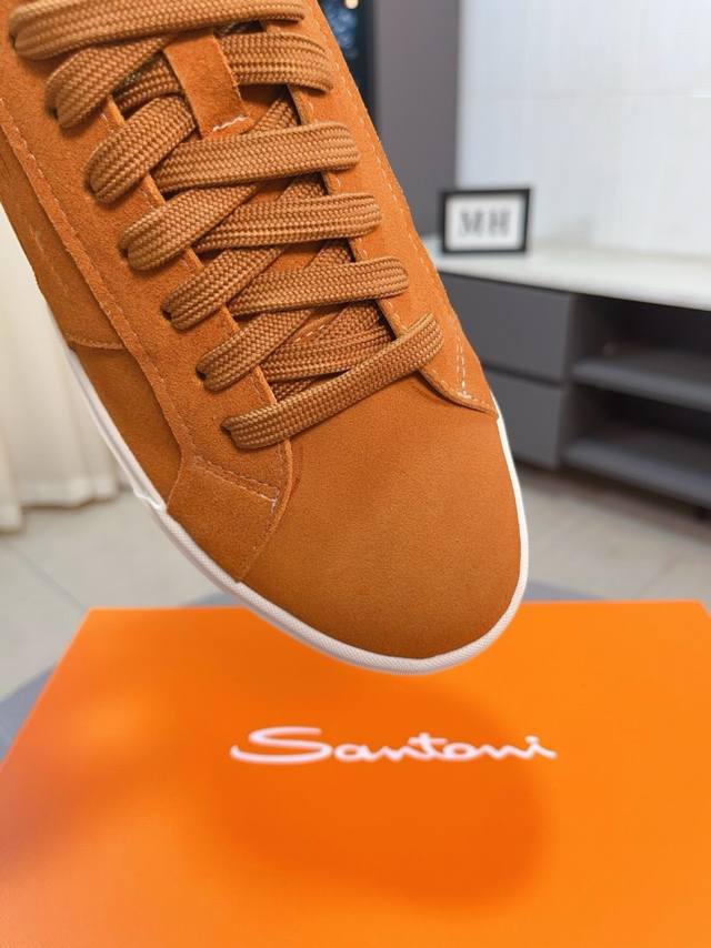 / 出厂价 Santoni 圣东尼 意大利男士小牛皮休闲板鞋出货!这个意大利纯手工鞋履品牌的每一双鞋设计简洁经典,上脚非常舒适百搭!此款鞋面面料采用进囗反绒小牛皮,