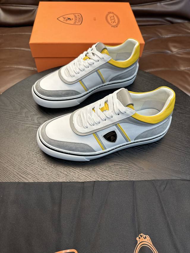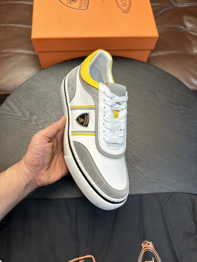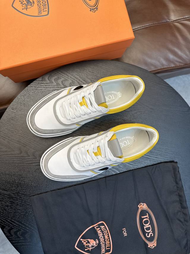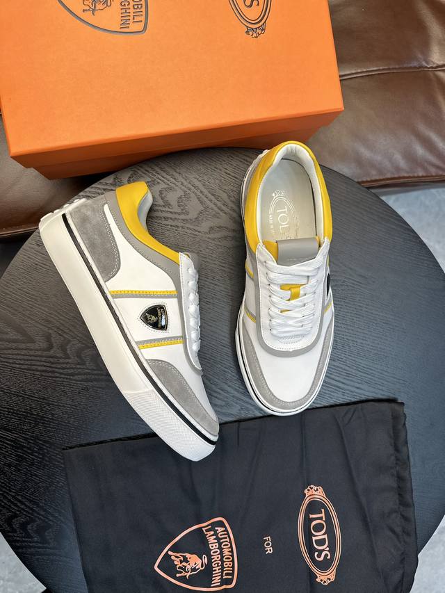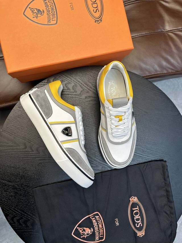 出厂价 TOD'S托德斯 x Lamborghini兰博基尼 ,本款运动休闲鞋以光滑皮革制成,鞋舌上饰以Tod's字母,侧边饰以Automobili Lamborghini字母标识联名款 休闲 运动鞋 小白鞋,原版购入开发 做货 肖战同款 小红书种草系列 鞋头、后跟、鞋底缀以豆豆 Gommino,令经典与现代运动风巧妙融合,鲜艳及高饱和的色彩搭配完美演绎,糅合传统工艺与创新设计,联名款式,演绎最具代表性的意大利生活风尚。配送专柜精美包装