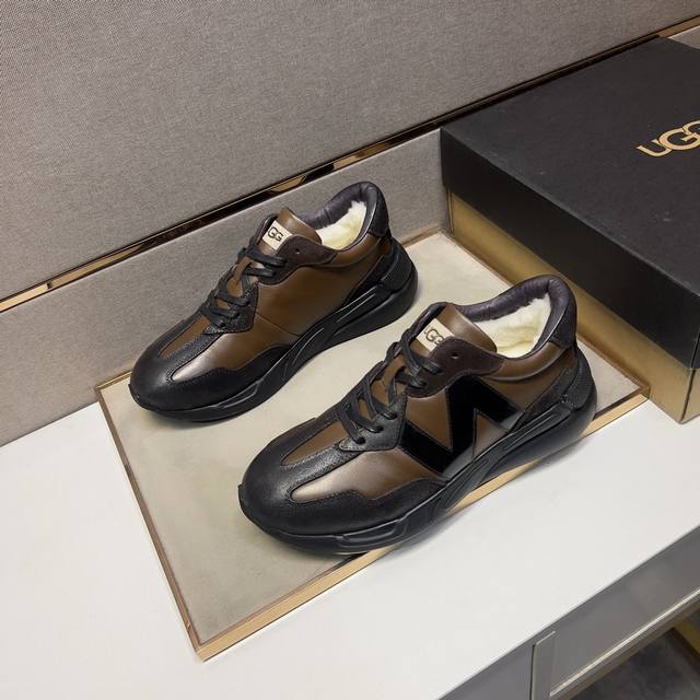 出厂价 Ugg~ 男士休闲雪地靴,2024Z柜同步发售 码数:38-44# 2个颜色鞋面选用多材质拼接全真羊毛内里,舒适透气,鞋底:原版舒适耐磨大底,实物拍摄实物更赞