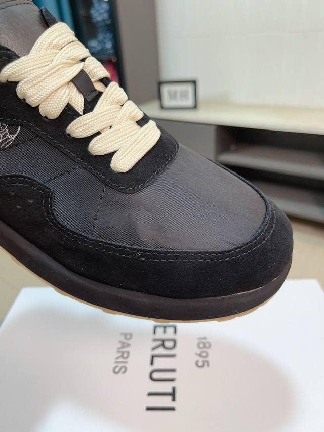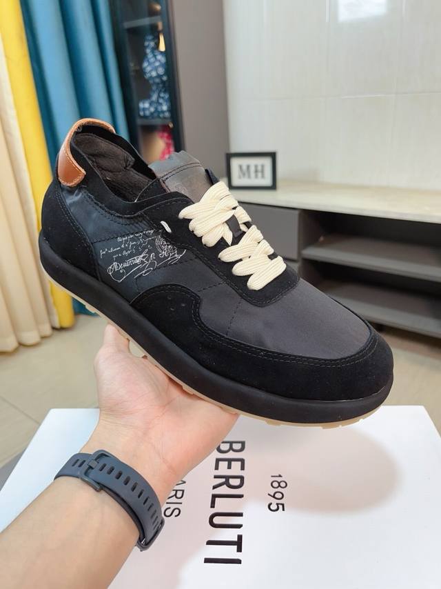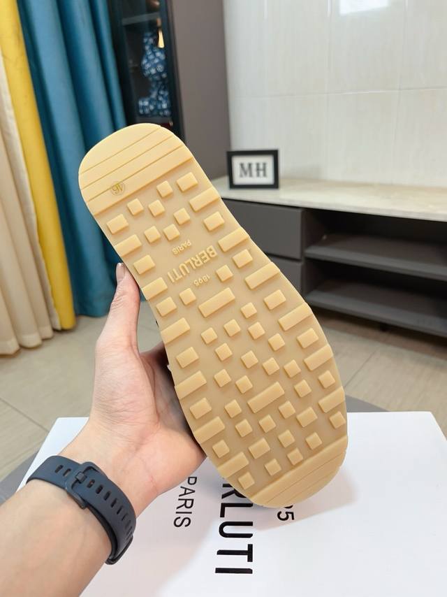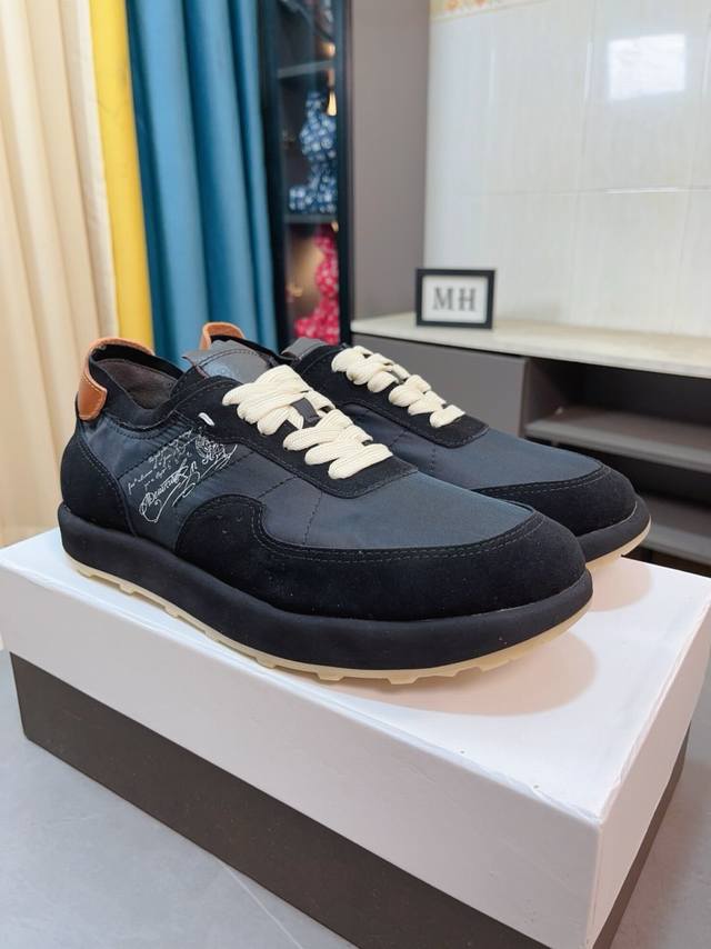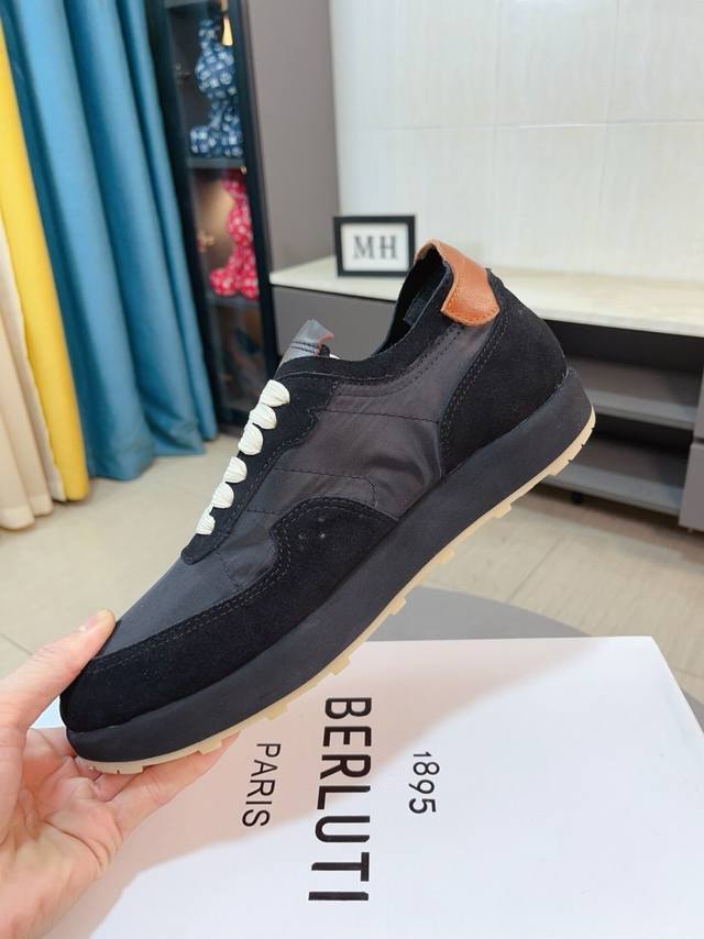 出厂价p Berlut* 布鲁提 新款出货 Shadow针织与皮革运动鞋 这双袜子鞋用轻盈且极富韧性的双面针织面料,双色高密度飞织拼接制成 鞋舌处饰Logo徽标